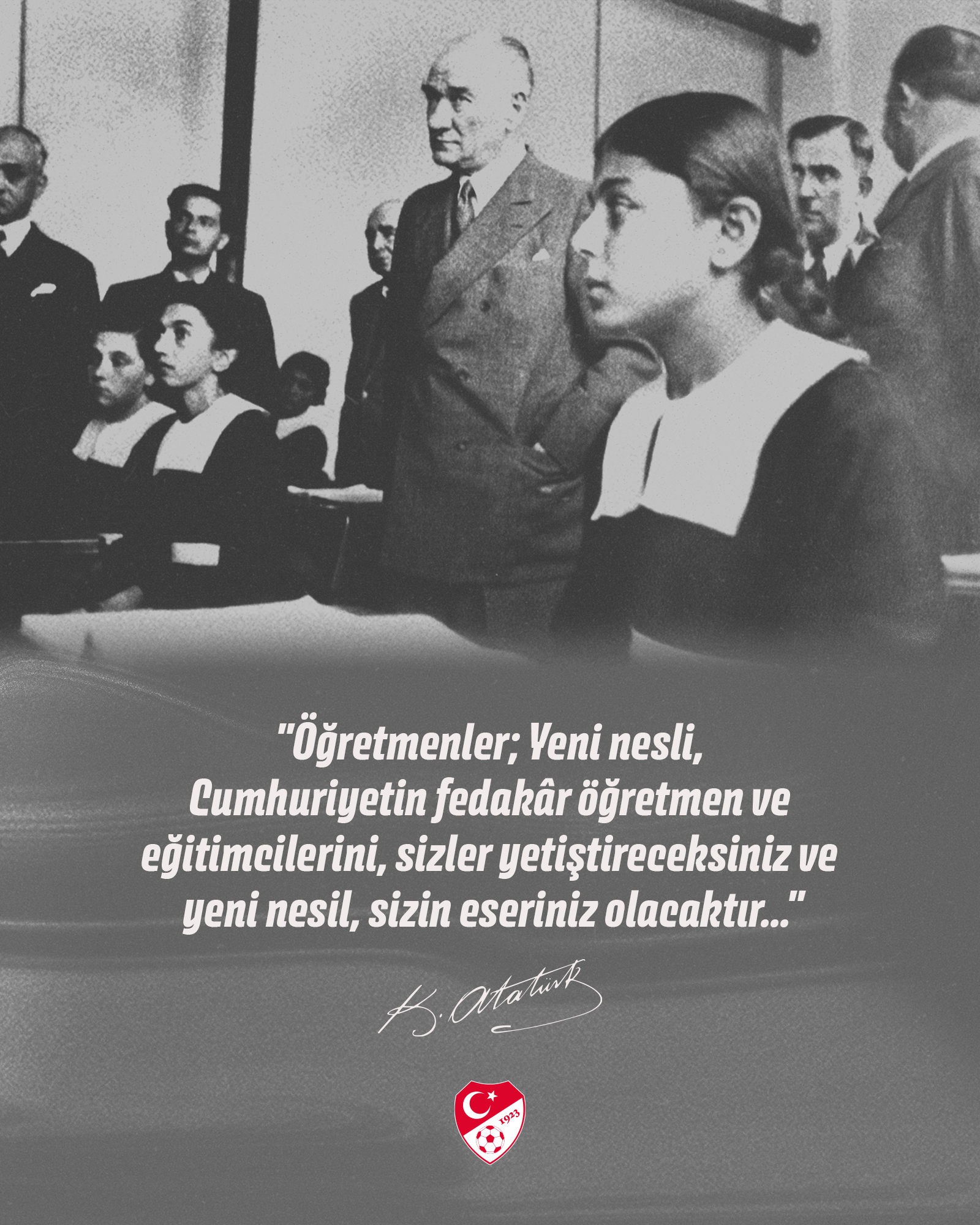 "Milletleri kurtaranlar yalnız ve ancak öğretmenlerdir. Öğretmenden, eğiticiden mahrum bir millet henüz bir millet adını alma yeteneğini kazanamamıştır." diyerek toplumun aynası öğretmenlere verdiği değeri gösteren, çağdaş eğitimin temellerini atan Başöğretmenimiz Mustafa Kemal Atatürk başta olmak üzere, bugün hayatta olmayan tüm öğretmenlerimizi minnet, şükran ve saygıyla anıyoruz.