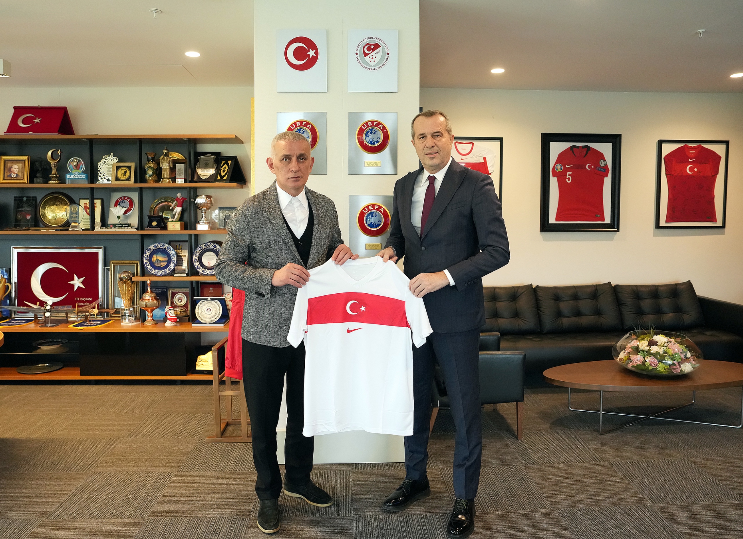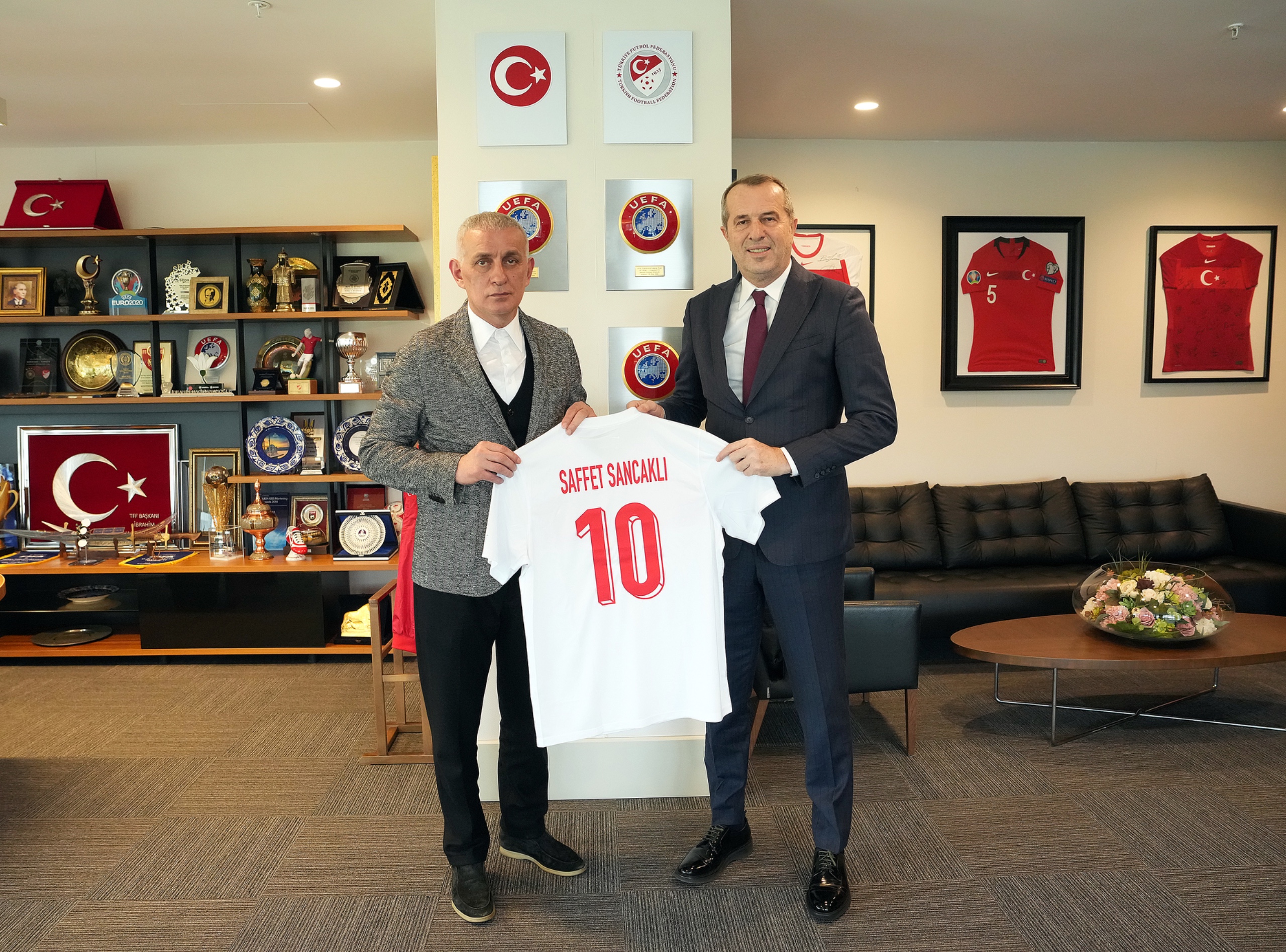 Riva Hasan Doğan Millî Takımlar Kamp ve Eğitim Tesisleri'nde gerçekleşen görüşmenin sonunda TFF Başkanı Hacıosmanoğlu, Saffet Sancaklı'ya üzerinde isminin yazılı olduğu bir A Millî Takım forması takdim etti.