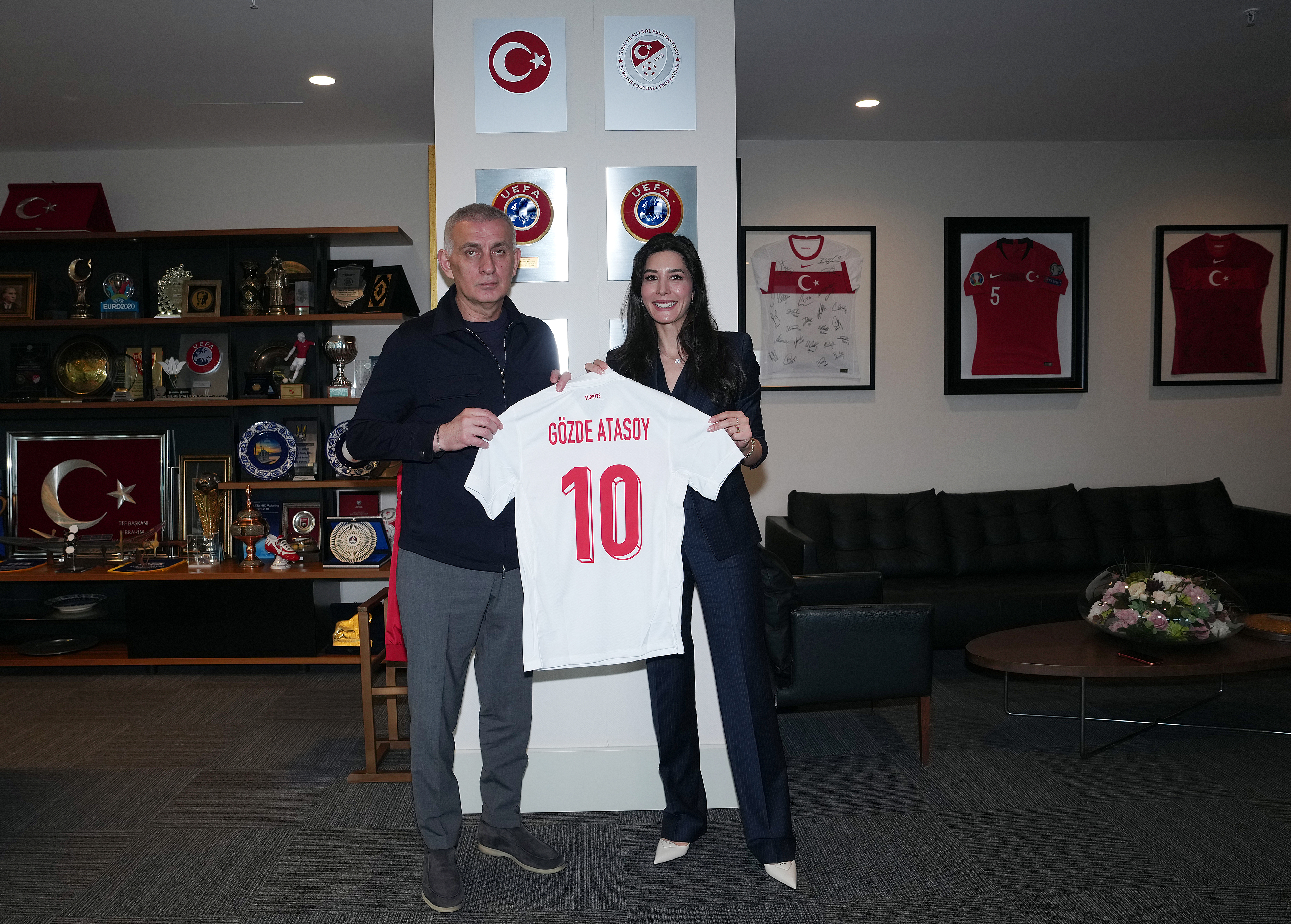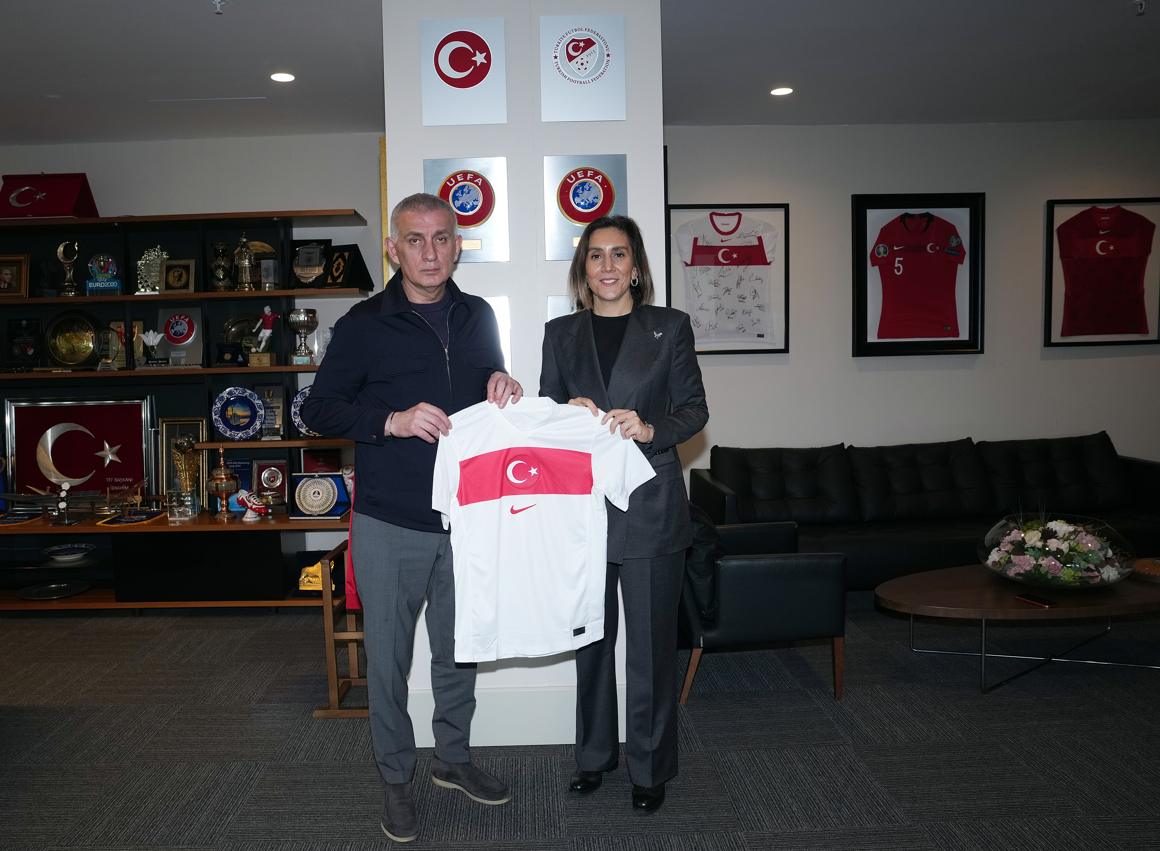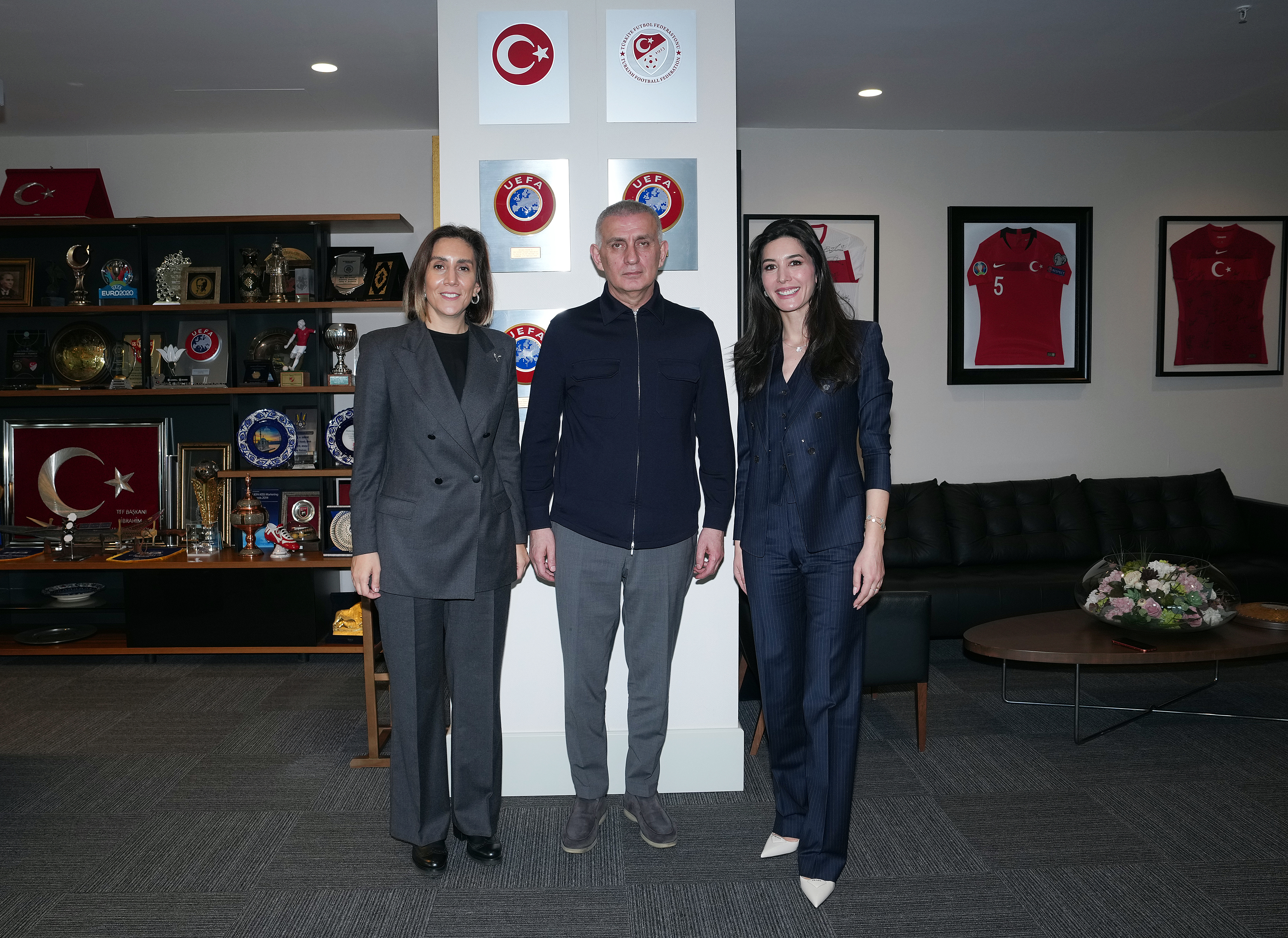 Beşiktaş Kulübü Yönetim Kurulu Üyesi Merve Öztopaloğlu ve Trabzonspor Kulübü Yönetim Kurulu Üyesi Gözde Atasoy, Türkiye Futbol Federasyonu Başkanı İbrahim Ethem Hacıosmanoğlu'nu makamında ziyaret etti.