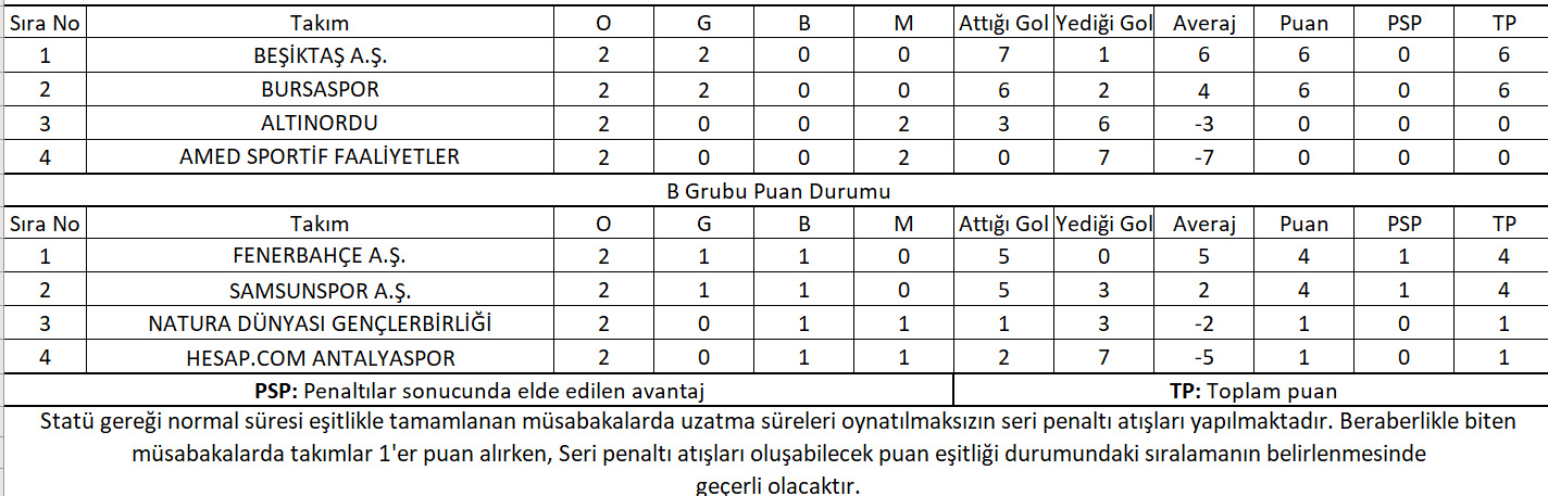 TFF YouTube kanalından canlı yayınlanan A Grubu'ndaki müsabakalarda Bursaspor, Amed Sportif Faaliyetler'i 2-0; Beşiktaş A.Ş., Altınordu'yu 2-1 mağlup etti. Yine TFF YouTube kanalından canlı yayınlanan B Grubu maçlarında; Fenerbahçe A.Ş., Hesap.com Antalyaspor'a 5-0; Samsunspor A.Ş., Natura Dünyası Gençlerbirliği'ne 3-1 üstünlük sağladı.
