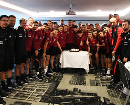 Ümit Millî Takım oyuncularımızdan Cenk Özkaçar'ın doğum günü, Ümit Millî Takımımızın kamp yaptığı otelde kutlandı.