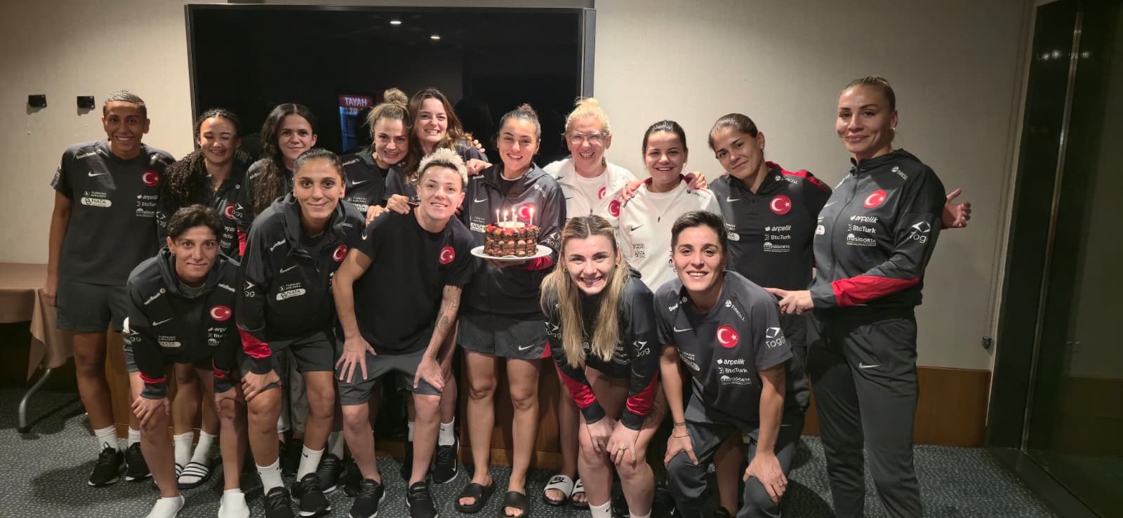 UEFA Uluslar B Ligi Play-Out mücadelesinde 24 Ekim Cuma günü deplasmanda, 28 Ekim Salı günü de İzmir'de Kosova ile karşılaşacak olan Kadın A Millî Takımımızda sürpriz doğum günü kutlaması yapıldı. Riva'da kampta bulunan Ay-Yıldızlılar, 33. yaş gününde Kaptan Didem Karagenç için pasta keserek kendisini tebrik etti.
