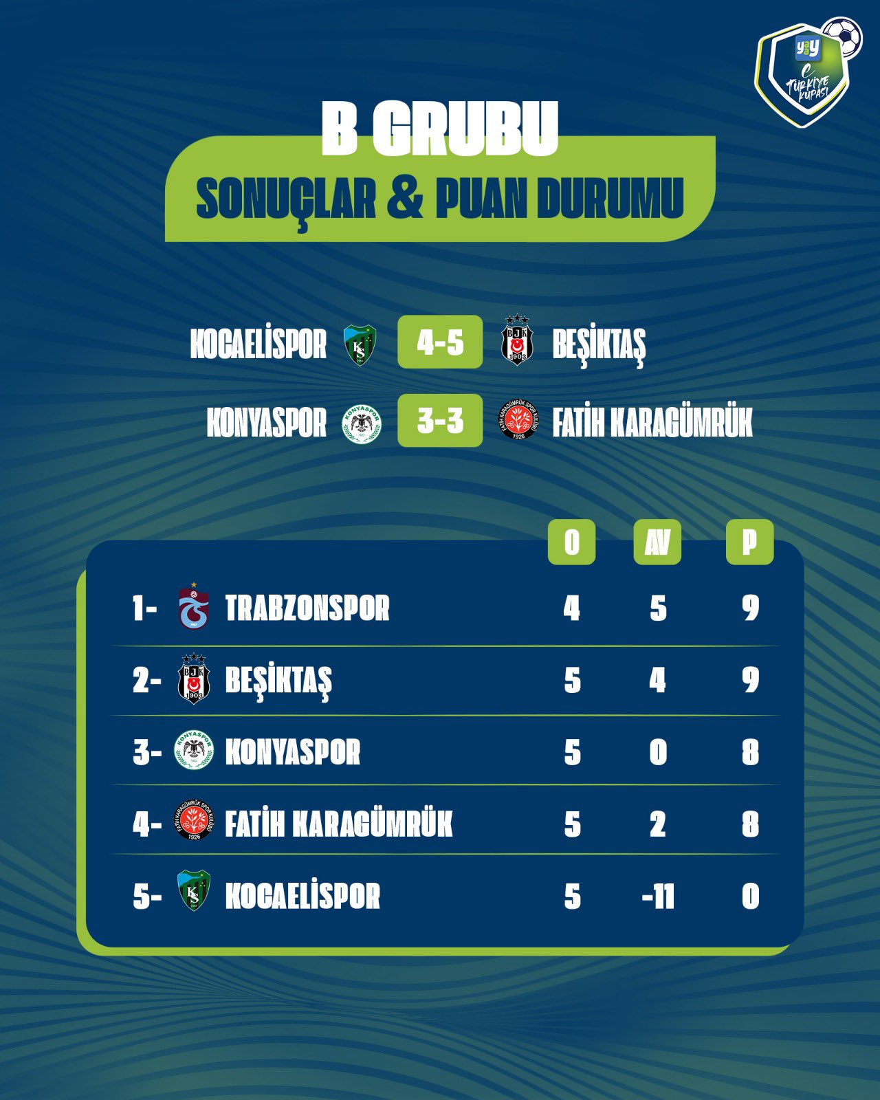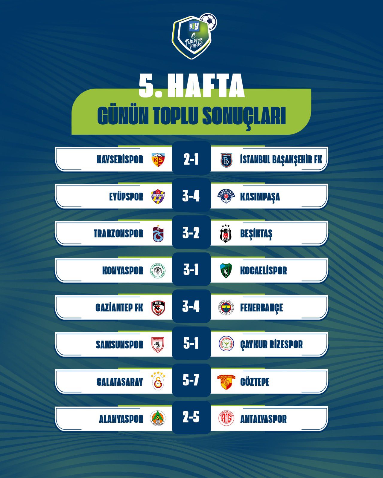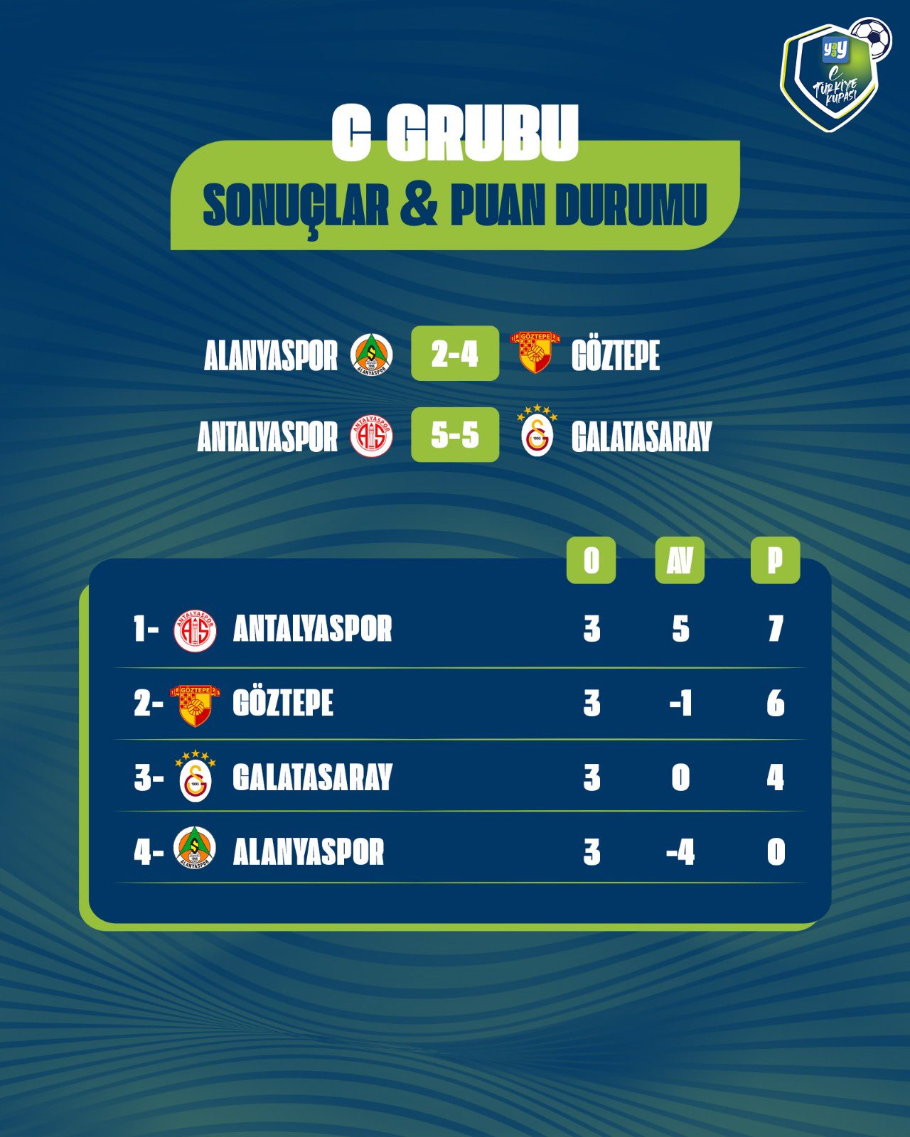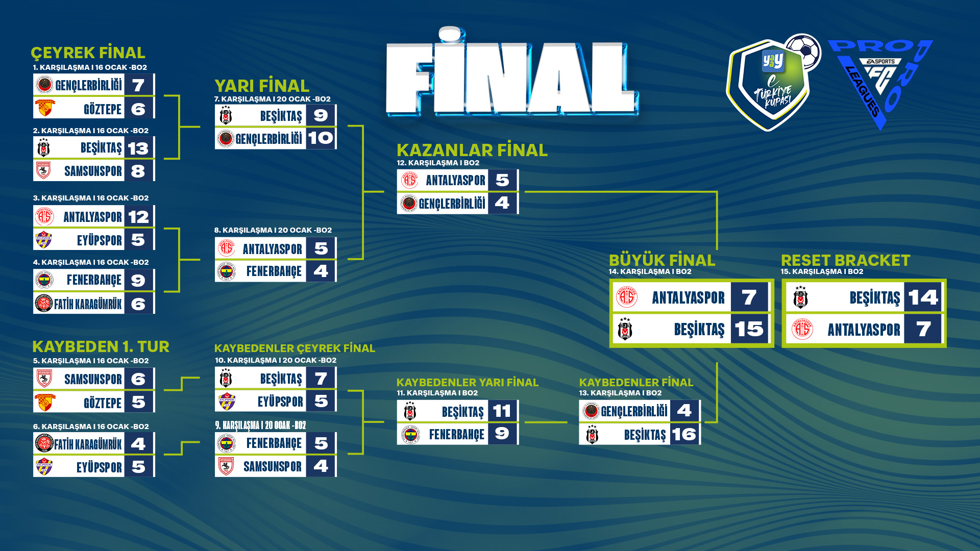 Yaay eTürkiye Kupası FinalleriYaay eTürkiye Kupası Play-Off Turu 1. gün toplu sonuçları için tıklayınızYaay eTürkiye Kupası Play-Off Turu 2. gün toplu sonuçları için tıklayınızYaay eTürkiye Kupası Toplu SonuçlarıYaay eTürkiye Kupası 1. hafta toplu sonuçları için tıklayınızYaay eTürkiye Kupası 2. hafta toplu sonuçları için tıklayınızYaay eTürkiye Kupası 3. hafta toplu sonuçları için tıklayınızYaay eTürkiye Kupası 4. hafta toplu sonuçları için tıklayınızYaay eTürkiye Kupası 5. hafta toplu sonuçları için tıklayınızYaay eTürkiye Kupası 6. hafta toplu sonuçları için tıklayınızYaay eTürkiye Kupası 7. ile 8. hafta toplu sonuçları için tıklayınızYaay eTürkiye Kupası 9. ile 10. hafta toplu sonuçları için tıklayınızYaay eTürkiye Kupası A GrubuYaay eTürkiye Kupası A Grubu 1. hafta sonuçları ve puan cetveli için tıklayınızYaay eTürkiye Kupası A Grubu 2. hafta sonuçları ve puan cetveli için tıklayınızYaay eTürkiye Kupası A Grubu 3. hafta sonuçları ve puan cetveli için tıklayınızYaay eTürkiye Kupası A Grubu 4. hafta sonuçları ve puan cetveli için tıklayınızYaay eTürkiye Kupası A Grubu 5. hafta sonuçları ve puan cetveli için tıklayınızYaay eTürkiye Kupası A Grubu 6. hafta sonuçları ve puan cetveli için tıklayınızYaay eTürkiye Kupası A Grubu 7. ile 8. hafta sonuçları ve puan cetveli için tıklayınızYaay eTürkiye Kupası A Grubu 9. ile 10. hafta sonuçları ve puan cetveli için tıklayınızYaay eTürkiye Kupası B GrubuYaay eTürkiye Kupası B Grubu 1. hafta sonuçları ve puan cetveli için tıklayınızYaay eTürkiye Kupası B Grubu 2. hafta sonuçları ve puan cetveli için tıklayınızYaay eTürkiye Kupası B Grubu 3. hafta sonuçları ve puan cetveli için tıklayınızYaay eTürkiye Kupası B Grubu 4. hafta sonuçları ve puan cetveli için tıklayınızYaay eTürkiye Kupası B Grubu 5. hafta sonuçları ve puan cetveli için tıklayınızYaay eTürkiye Kupası B Grubu 6. hafta sonuçları ve puan cetveli için tıklayınızYaay eTürkiye Kupası B Grubu 7. ile 8. hafta sonuçları ve puan cetveli için tıklayınızYaay eTürkiye Kupası B Grubu 9. ile 10. hafta sonuçları ve puan cetveli için tıklayınızYaay eTürkiye Kupası C GrubuYaay eTürkiye Kupası C Grubu 1. hafta sonuçları ve puan cetveli için tıklayınızYaay eTürkiye Kupası C Grubu 2. hafta sonuçları ve puan cetveli için tıklayınızYaay eTürkiye Kupası C Grubu 3. hafta sonuçları ve puan cetveli için tıklayınızYaay eTürkiye Kupası C Grubu 4. hafta sonuçları ve puan cetveli için tıklayınızYaay eTürkiye Kupası C Grubu 5. hafta sonuçları ve puan cetveli için tıklayınızYaay eTürkiye Kupası C Grubu 6. hafta sonuçları ve puan cetveli için tıklayınızYaay eTürkiye Kupası D GrubuYaay eTürkiye Kupası D Grubu 1. hafta sonuçları ve puan cetveli için tıklayınızYaay eTürkiye Kupası D Grubu 2. hafta sonuçları ve puan cetveli için tıklayınızYaay eTürkiye Kupası D Grubu 3. hafta sonuçları ve puan cetveli için tıklayınızYaay eTürkiye Kupası D Grubu 4. hafta sonuçları ve puan cetveli için tıklayınızYaay eTürkiye Kupası D Grubu 5. hafta sonuçları ve puan cetveli için tıklayınızYaay eTürkiye Kupası D Grubu 6. hafta sonuçları ve puan cetveli için tıklayınız