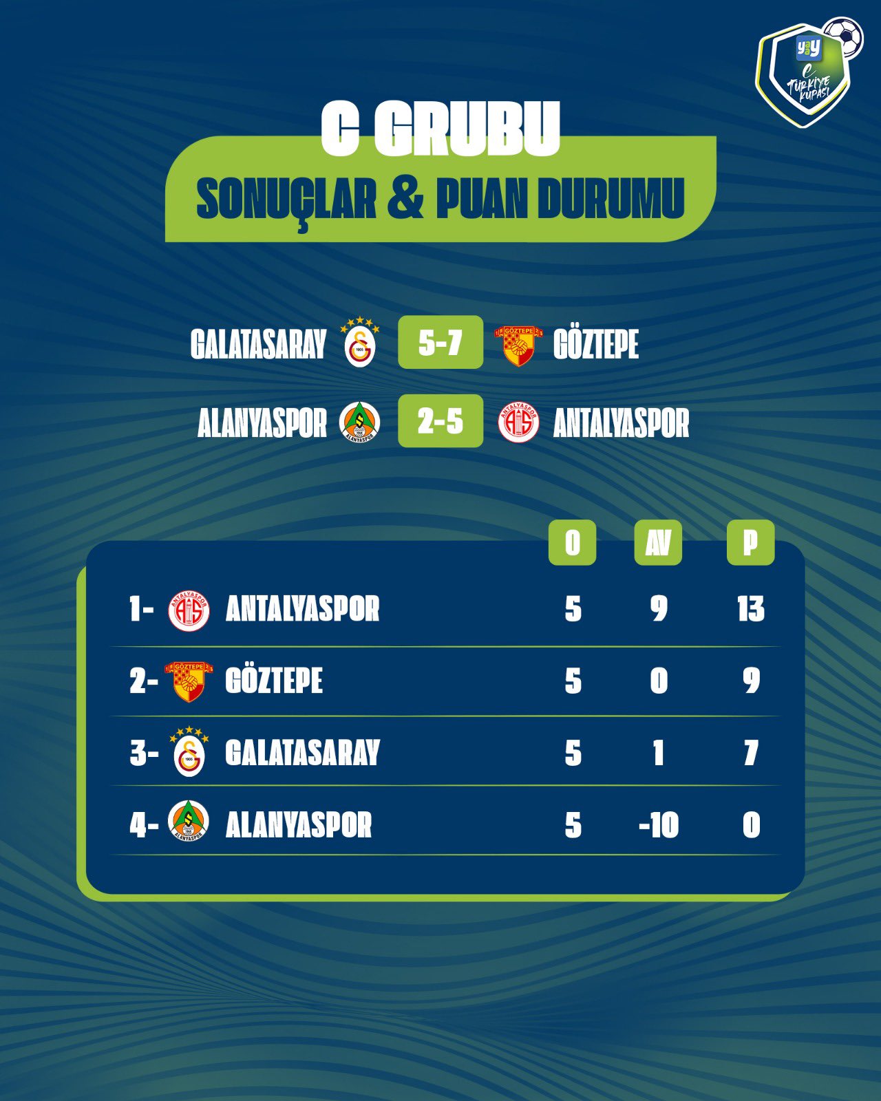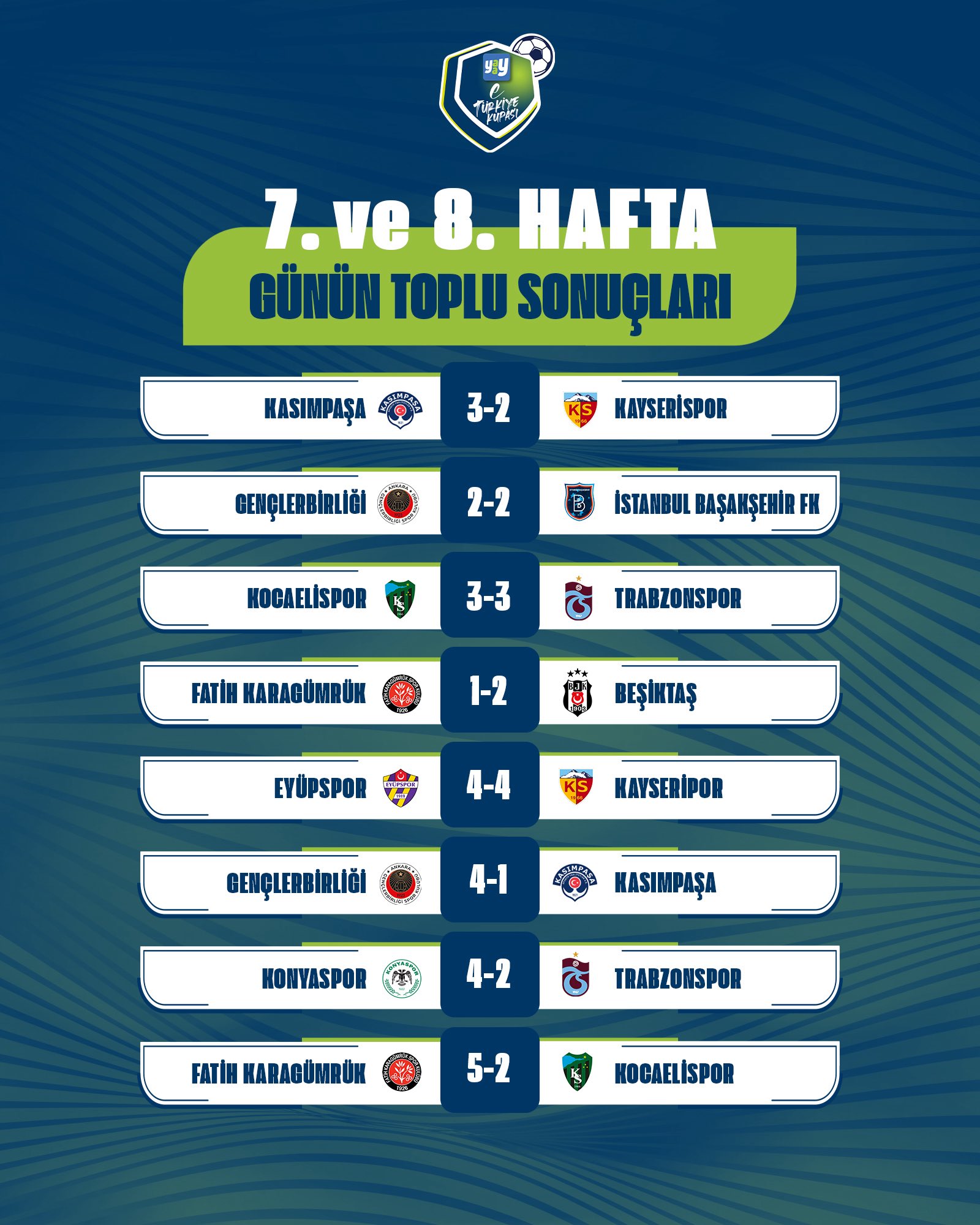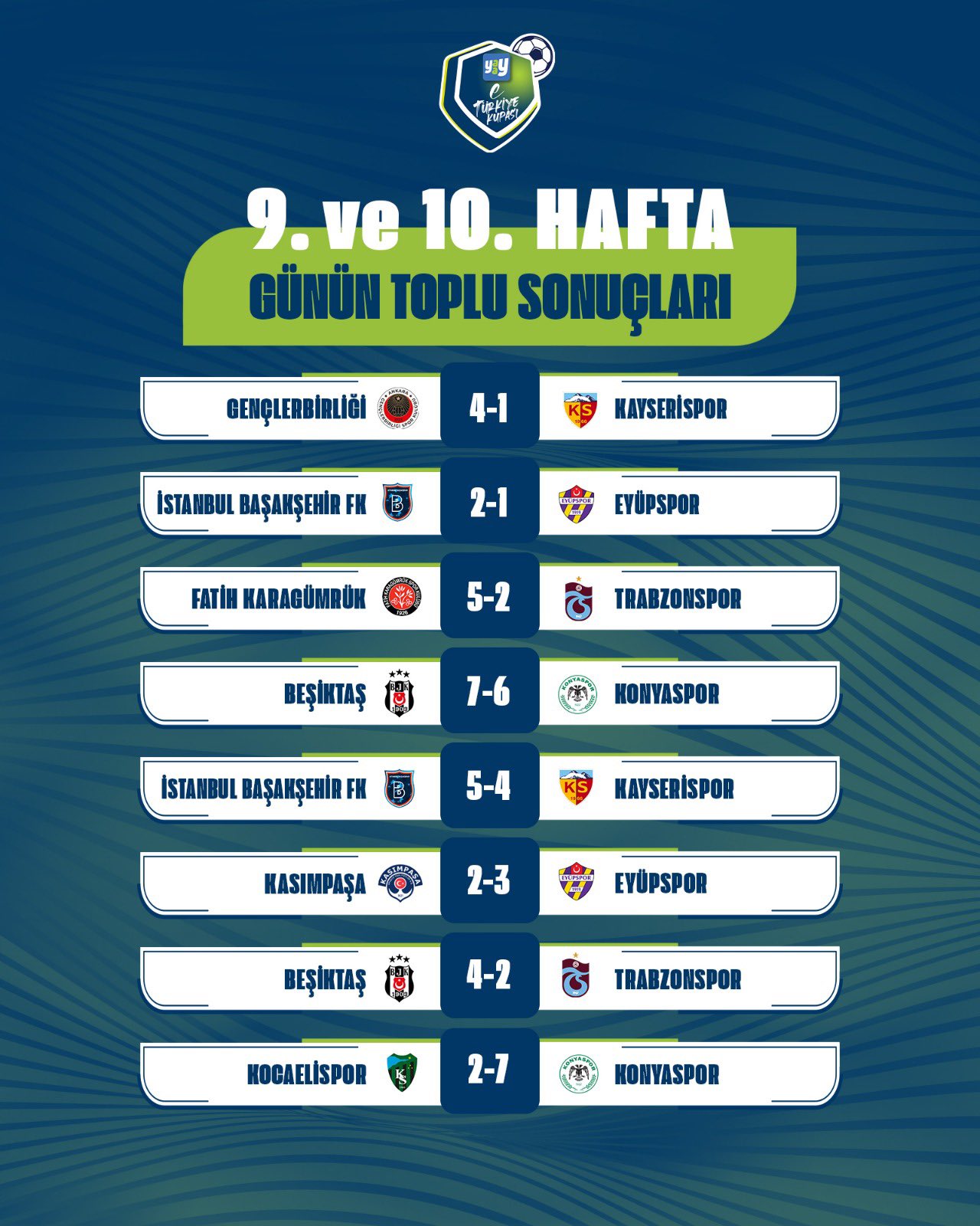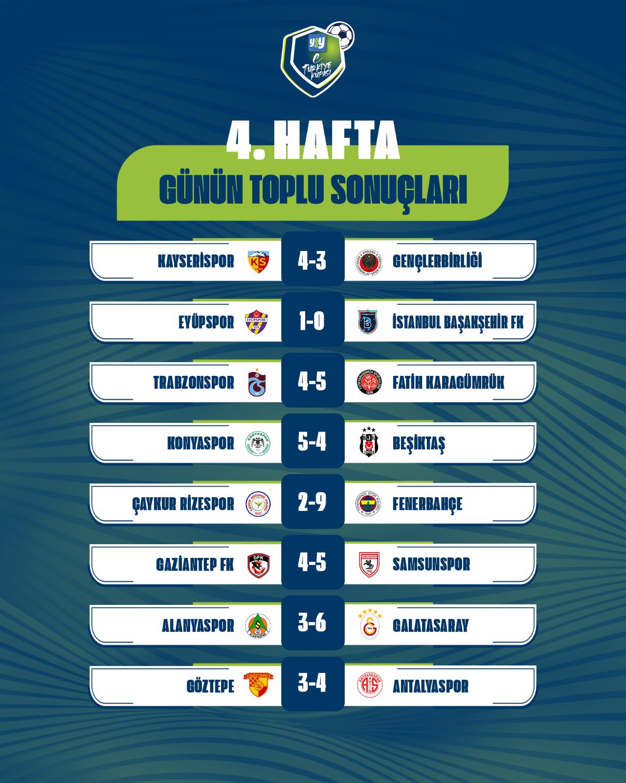 Yaay eTürkiye Kupası FinalleriYaay eTürkiye Kupası Play-Off Turu 1. gün toplu sonuçları için tıklayınızYaay eTürkiye Kupası Play-Off Turu 2. gün toplu sonuçları için tıklayınızYaay eTürkiye Kupası Toplu SonuçlarıYaay eTürkiye Kupası 1. hafta toplu sonuçları için tıklayınızYaay eTürkiye Kupası 2. hafta toplu sonuçları için tıklayınızYaay eTürkiye Kupası 3. hafta toplu sonuçları için tıklayınızYaay eTürkiye Kupası 4. hafta toplu sonuçları için tıklayınızYaay eTürkiye Kupası 5. hafta toplu sonuçları için tıklayınızYaay eTürkiye Kupası 6. hafta toplu sonuçları için tıklayınızYaay eTürkiye Kupası 7. ile 8. hafta toplu sonuçları için tıklayınızYaay eTürkiye Kupası 9. ile 10. hafta toplu sonuçları için tıklayınızYaay eTürkiye Kupası A GrubuYaay eTürkiye Kupası A Grubu 1. hafta sonuçları ve puan cetveli için tıklayınızYaay eTürkiye Kupası A Grubu 2. hafta sonuçları ve puan cetveli için tıklayınızYaay eTürkiye Kupası A Grubu 3. hafta sonuçları ve puan cetveli için tıklayınızYaay eTürkiye Kupası A Grubu 4. hafta sonuçları ve puan cetveli için tıklayınızYaay eTürkiye Kupası A Grubu 5. hafta sonuçları ve puan cetveli için tıklayınızYaay eTürkiye Kupası A Grubu 6. hafta sonuçları ve puan cetveli için tıklayınızYaay eTürkiye Kupası A Grubu 7. ile 8. hafta sonuçları ve puan cetveli için tıklayınızYaay eTürkiye Kupası A Grubu 9. ile 10. hafta sonuçları ve puan cetveli için tıklayınızYaay eTürkiye Kupası B GrubuYaay eTürkiye Kupası B Grubu 1. hafta sonuçları ve puan cetveli için tıklayınızYaay eTürkiye Kupası B Grubu 2. hafta sonuçları ve puan cetveli için tıklayınızYaay eTürkiye Kupası B Grubu 3. hafta sonuçları ve puan cetveli için tıklayınızYaay eTürkiye Kupası B Grubu 4. hafta sonuçları ve puan cetveli için tıklayınızYaay eTürkiye Kupası B Grubu 5. hafta sonuçları ve puan cetveli için tıklayınızYaay eTürkiye Kupası B Grubu 6. hafta sonuçları ve puan cetveli için tıklayınızYaay eTürkiye Kupası B Grubu 7. ile 8. hafta sonuçları ve puan cetveli için tıklayınızYaay eTürkiye Kupası B Grubu 9. ile 10. hafta sonuçları ve puan cetveli için tıklayınızYaay eTürkiye Kupası C GrubuYaay eTürkiye Kupası C Grubu 1. hafta sonuçları ve puan cetveli için tıklayınızYaay eTürkiye Kupası C Grubu 2. hafta sonuçları ve puan cetveli için tıklayınızYaay eTürkiye Kupası C Grubu 3. hafta sonuçları ve puan cetveli için tıklayınızYaay eTürkiye Kupası C Grubu 4. hafta sonuçları ve puan cetveli için tıklayınızYaay eTürkiye Kupası C Grubu 5. hafta sonuçları ve puan cetveli için tıklayınızYaay eTürkiye Kupası C Grubu 6. hafta sonuçları ve puan cetveli için tıklayınızYaay eTürkiye Kupası D GrubuYaay eTürkiye Kupası D Grubu 1. hafta sonuçları ve puan cetveli için tıklayınızYaay eTürkiye Kupası D Grubu 2. hafta sonuçları ve puan cetveli için tıklayınızYaay eTürkiye Kupası D Grubu 3. hafta sonuçları ve puan cetveli için tıklayınızYaay eTürkiye Kupası D Grubu 4. hafta sonuçları ve puan cetveli için tıklayınızYaay eTürkiye Kupası D Grubu 5. hafta sonuçları ve puan cetveli için tıklayınızYaay eTürkiye Kupası D Grubu 6. hafta sonuçları ve puan cetveli için tıklayınız