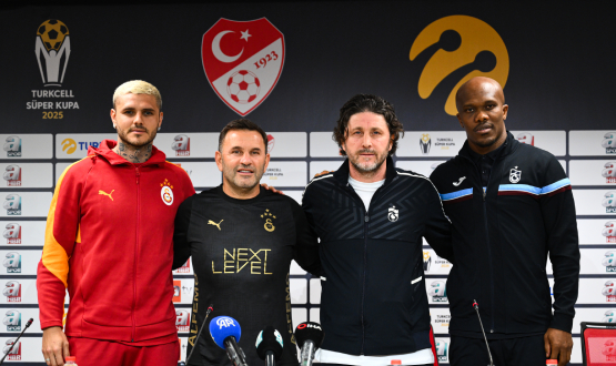 Turkcell Süper Kupa 2025 Yarı Final Ortak Basın Toplantısı Yapıldı Turkcell Süper Kupa 2025'in Galatasaray A.Ş. ile Trabzonspor A.Ş. arasında yarın akşam oynanacak olan ilk yarı final müsabakasının öncesinde Galatasaray Teknik Direktörü... 2024 Turkcell Süper Kupa Basın Toplantısı İçin Medya ve Frekans Bilgilendirmesi Atatürk Olimpiyat Stadyumu’nda 3 Ağustos Cumartesi günü oynanacak olan 2024 Turkcell Süper Kupa müsabakasının öncesinde 2 Ağustos Cuma günü (yarın) saat 14.30’da Galatasaray ile Beşiktaş’ın yapacağı ortak basın toplantısını, dileyen... 2024 Turkcell Süper Kupa Müsabakasını Atilla Karaoğlan Yönetecek 2023-2024 Sezonu Trendyol Süper Lig Şampiyonu Galatasaray A.Ş. ile 2023-2024 Sezonu Ziraat Türkiye Kupası Şampiyonu Beşiktaş A.Ş. arasında oynanacak olan 2024 Turkcell Süper Kupa müsabakasının hakemleri belli oldu. [ «« ] [ « ]3 - 4 - 5 - 6 - 7 - 8 - 9 - 10 - 11 - 12[ » ] [ »» ] TFF SÜPER KUPA FİNAL MAÇLARI Tarih Stat 1. Takım Skor 2. Takım 03.08.2024 ATATÜRK OLİMPİYAT GALATASARAY 0-5 BEŞİKTAŞ 07.04.2024 11 NİSAN STADYUMU GALATASARAY 3-0(HÜKMEN) FENERBAHÇE 30.07.2022 ATATÜRK OLİMPİYAT TRABZONSPOR 4-0 DEMİR GRUP SİVASSPOR 05.01.2022 AHMED BİN ALİ (DOHA) BEŞİKTAŞ 1 - 1(4-2 P.) FRAPORT TAV ANTALYASPOR 27.01.2021 ATATÜRK OLİMPİYAT MEDİPOL BAŞAKŞEHİR 1-2 TRABZONSPOR 07.08.2019 ANKARA ERYAMAN AKHİSARSPOR 0-1 GALATASARAY 05.08.2018 KONYA B.Ş. BELEDİYE GALATASARAY 1 - 1(4 - 5 P.) AKHİSARSPOR 06.08.2017 SAMSUN YENİ 19 MAYIS BEŞİKTAŞ A.Ş. 1 - 2 ATİKER KONYASPOR 13.08.2016 KONYA B.Ş. BELEDİYE BEŞİKTAŞ A.Ş. 1 - 1(0 - 3 P.) GALATASARAY A.Ş. 08.08.2015 OSMANLI STADI GALATASARAY A.Ş. 1 - 0 BURSASPOR 25.08.2014 MANİSA 19 MAYIS FENERBAHÇE 0 - 0 (3 - 2 P.) GALATASARAY 11.08.2013 BŞ. BLD. KADİR HAS GALATASARAY 1 - 0 FENERBAHÇE 12.08.2012 YENİ ERZURUM GALATASARAY 3 - 2 FENERBAHÇE 07.08.2010 ATATÜRK OLİMPİYAT BURSASPOR 0 - 3 TRABZONSPOR 02.08.2009 ATATÜRK OLİMPİYAT BEŞİKTAŞ 0 - 2 FENERBAHÇE 17.08.2008 MSV ARENA GALATASARAY 2 - 1 KAYSERİSPOR 05.08.2007 RHEINENERGIE STADI FENERBAHÇE 2 - 1 BEŞİKTAŞ 30.07.2006 COMMERZBANK ARENA GALATASARAY 0 - 1 BEŞİKTAŞ