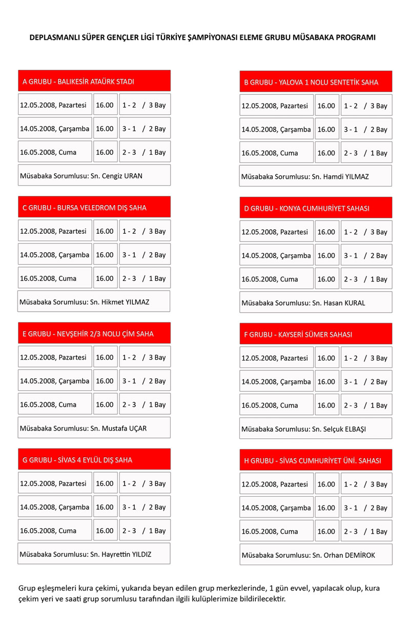 Ligler » Gençlik Geliştirme Ligleri » GGL Haber DSGL Türkiye Şampiyonası eleme grupları ve maç programı 29.04.2008 2007 - 2008 sezonu Deplasmanlı Süper Gençler Ligi Türkiye Şampiyonası eleme grubu müsabakaları 24 takımın katılımı ile 8 grupta, 12-16 Mayıs 2008 tarihleri arasında Balıkesir - Yalova - Bursa - Konya - Nevşehir - Kayseri ve Sivas grup merkezlerinde oynatılacaktır.DSGL Türkiye Şampiyonası Eleme Grubu Programı için tıklayınız... DSGL Türkiye Şampiyonası Grupları Diğer Haberler 2021-2022 sezonu Elit Lig grup kura çekimi yapıldı Süper Lig U19'da Kasımpaşa A.Ş. ile Trabzonspor A.Ş. yarı finale yükseldi Altınordu'nun rakibi HJK Helsinki oldu Bölgesel Gelişim U19 Ligi'nde finalistler belli oldu Bölgesel Gelişim U19 Ligi Türkiye finalleri başlıyor U15 Süper Finali İstanbul'da oynanacak Trabzonspor ve Boluspor, Nike Premier Cup U15 Süper Finalleri'nde Nike Premier Cup'a BGL U15'ten katılacak takımlar belirleniyor Nike Premier Cup Türkiye Şampiyonası BGL U15 1. Kademe kuraları çekildi Genç Kızlarda şampiyon Karadeniz Ereğlispor [ «« ] [ « ]1 - 2 - 3 - 4 - 5[ » ] [ »» ]