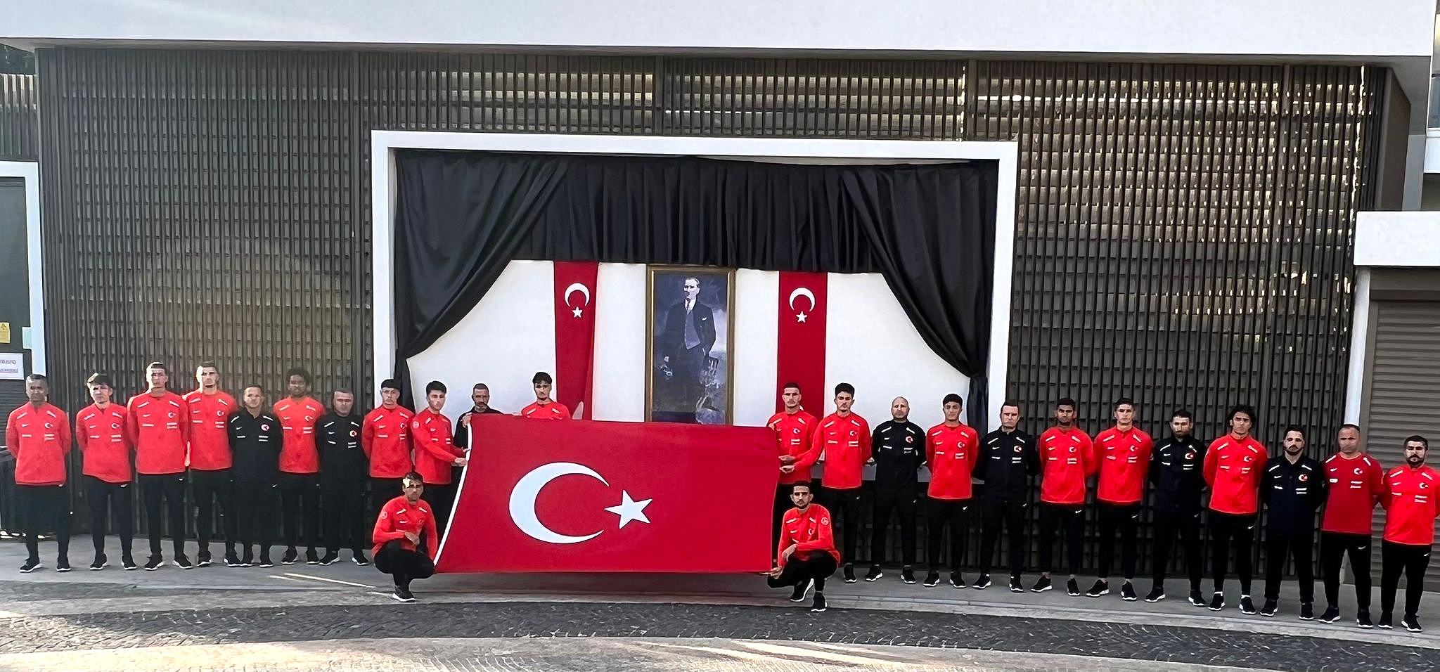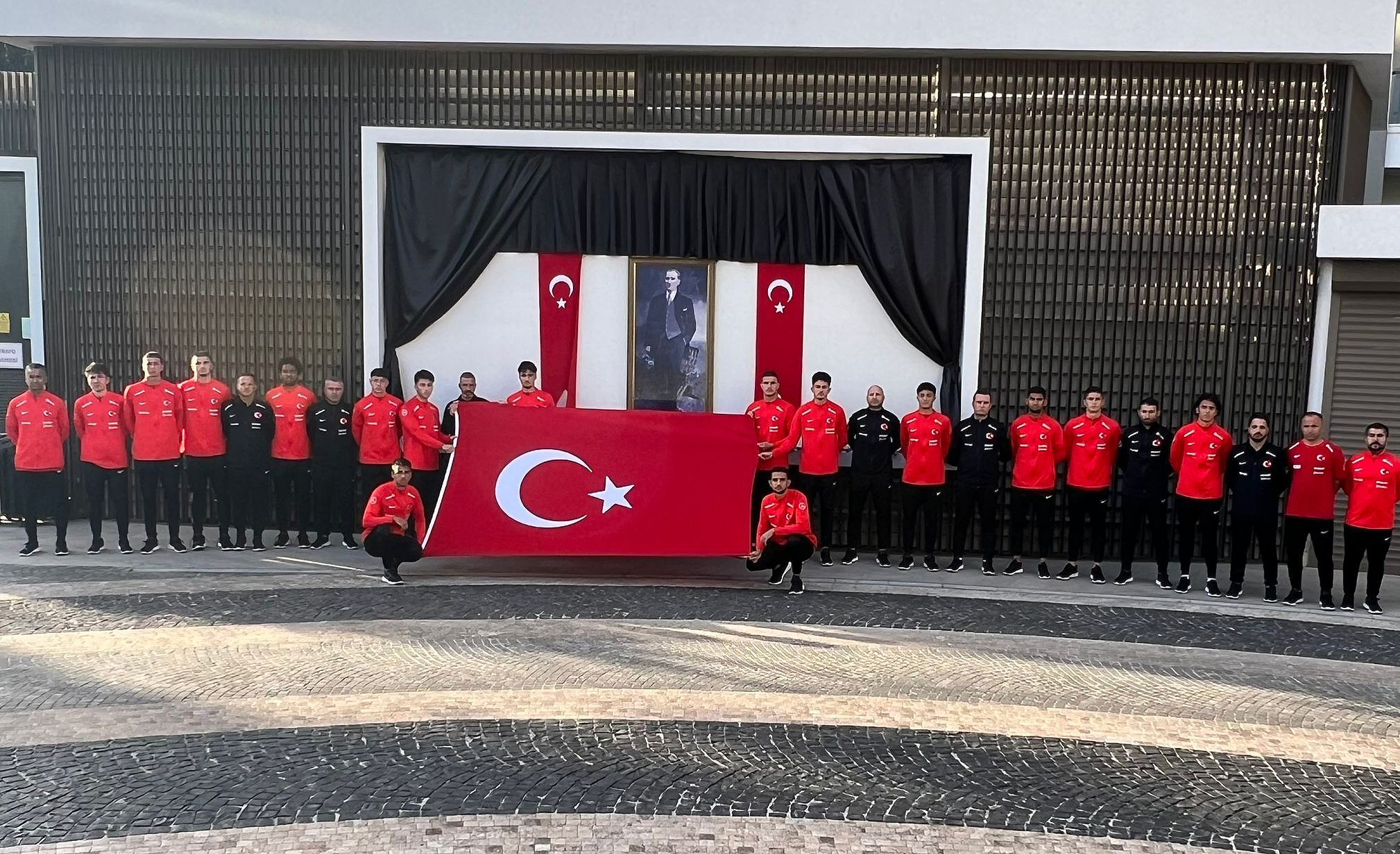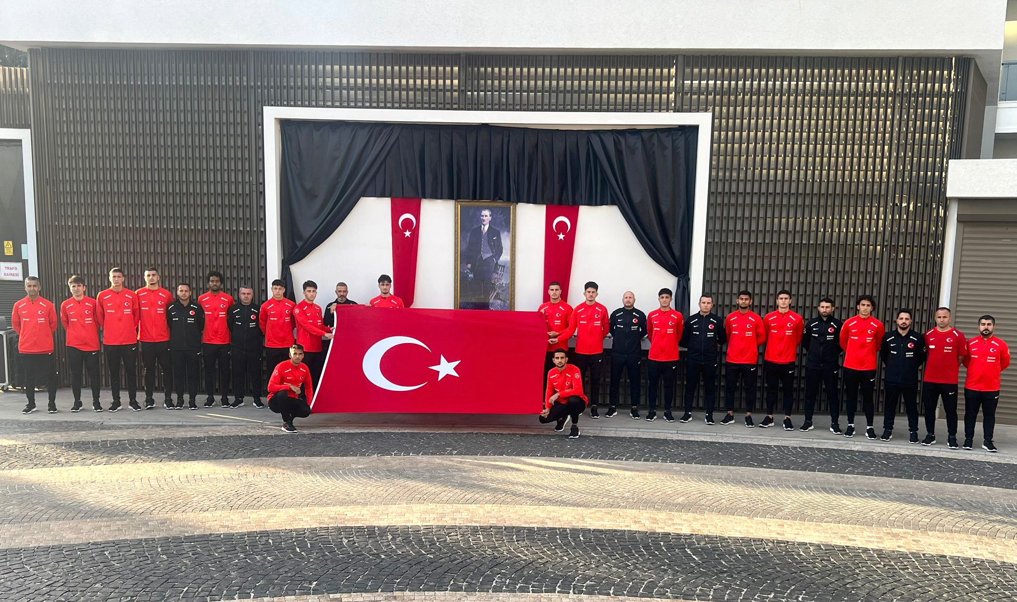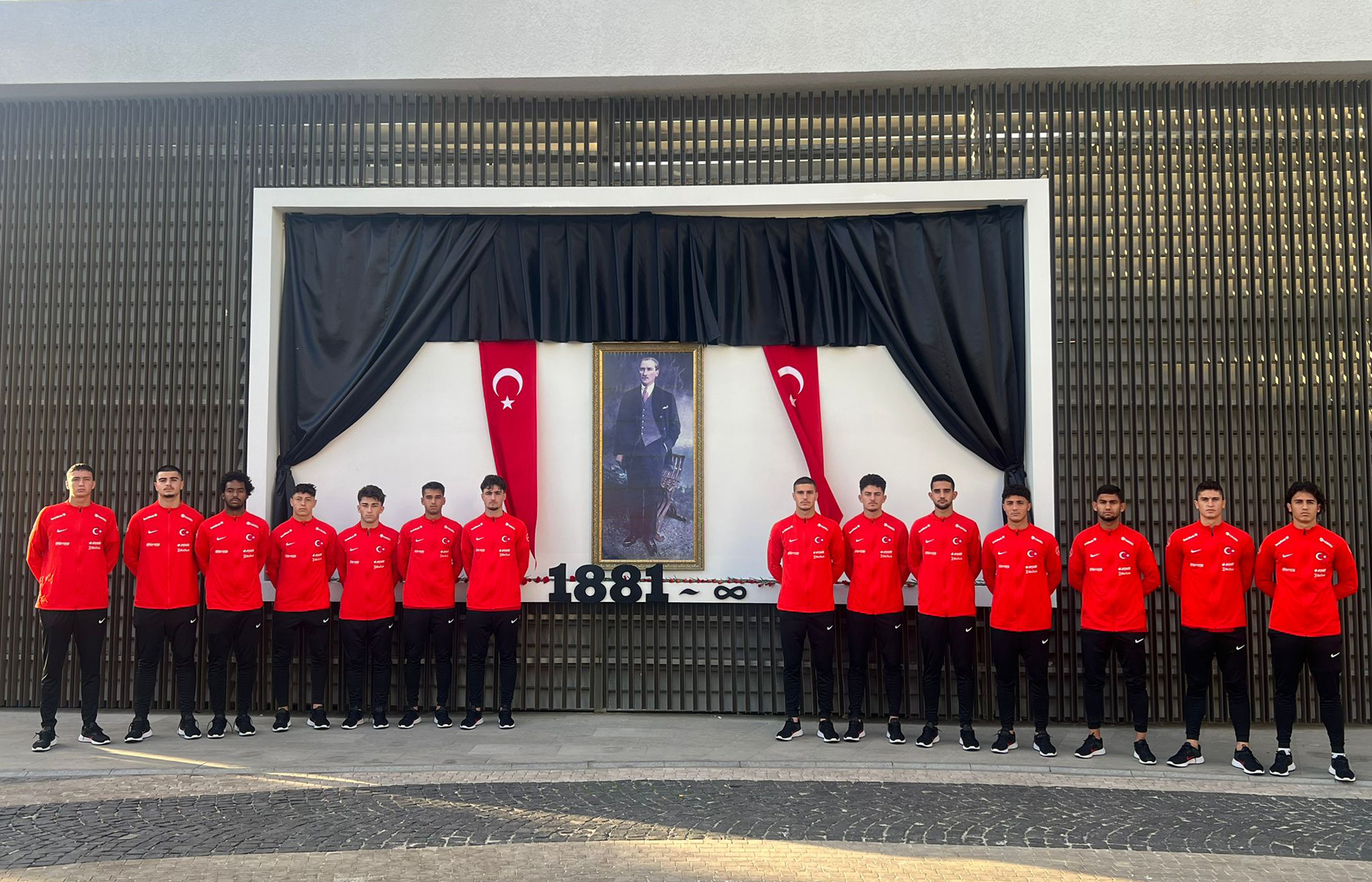 U19 Millî Takımımızın teknik heyeti ve kampa dâhil olan futbolcuları, Ulu Önder Gazi Mustafa Kemal Atatürk'ün anısına saygı duruşunda bulundu.