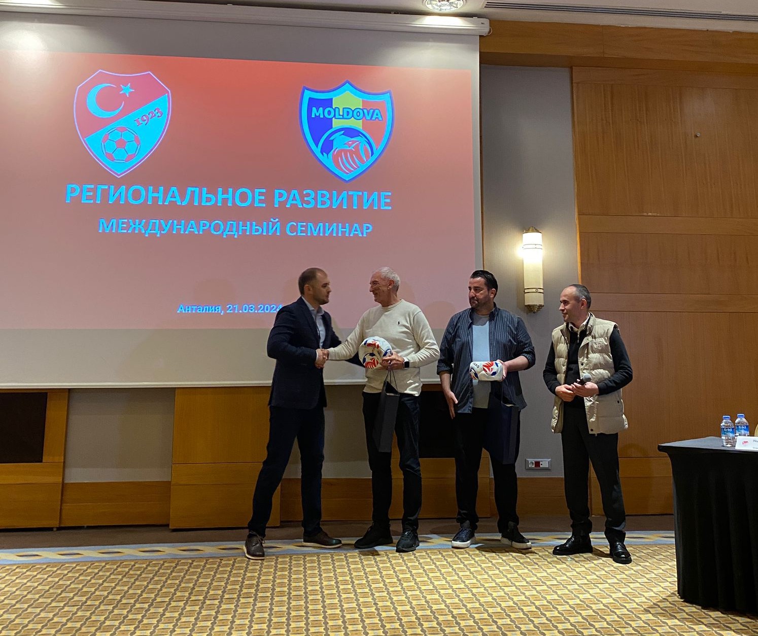 Moldova Futbol Federasyonu'nun Antalya'da gerçekleştirdiği ve 26 Mart tarihine dek sürecek seminere Türkiye Futbol Federasyonu Futbol Gelişim Direktörlüğü adına Antrenör Eğitim Programı Müdürü Emrah Aykurt ve Grassroots Müdürü Nur Mustafa Gülen konuşmacı olarak katıldılar.