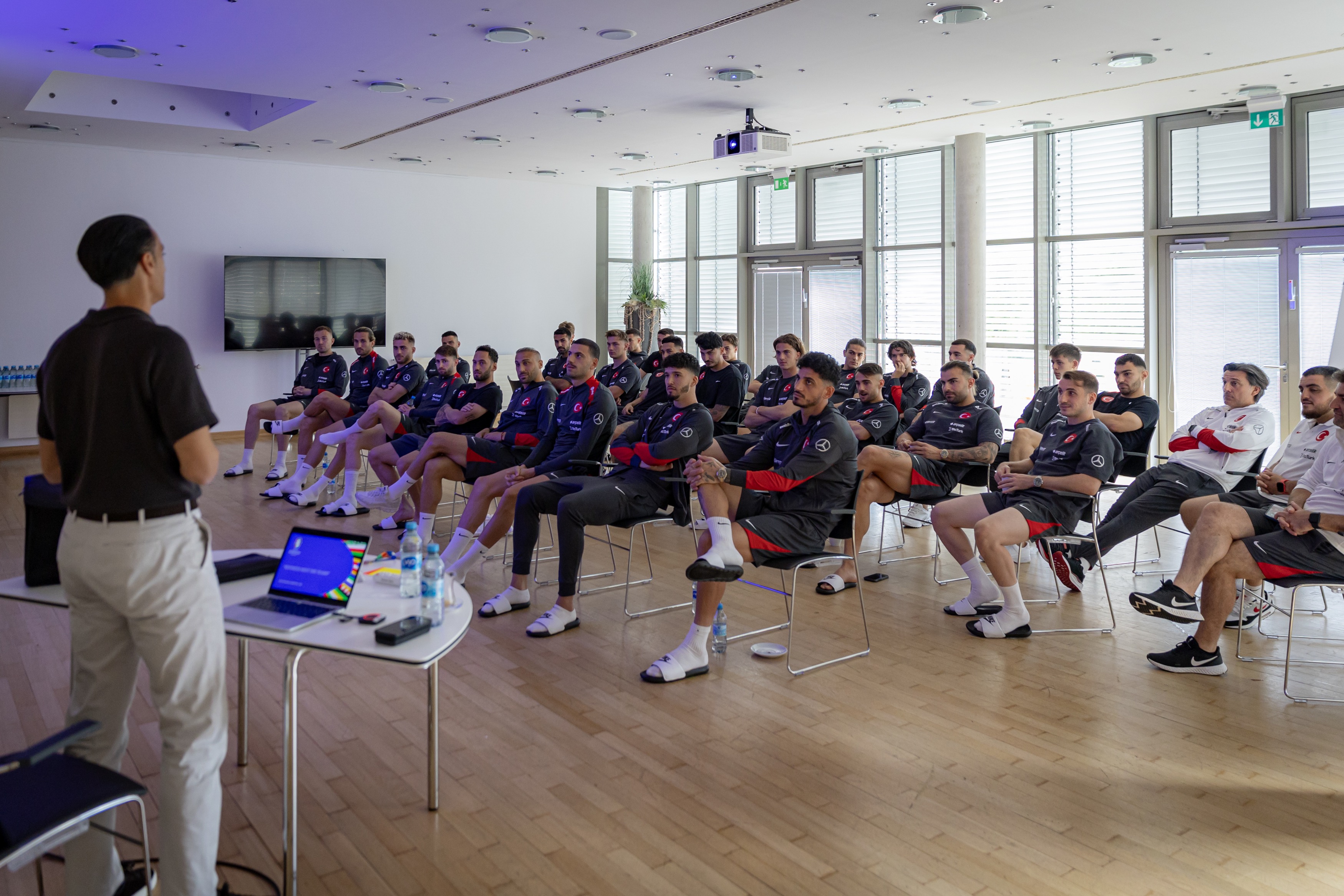 Hollanda Futbol Federasyonu'nu temsilen 2024 Avrupa Şampiyonası'nda görev yapacak Türk asıllı Hollandalı hakem Serdar Gözübüyük, bugün A Millî Takımımızın teknik heyet ve oyuncularına turnuvada hakemlerle iletişim ve oyun kurallarına ilişkin bir sunum yaptı.