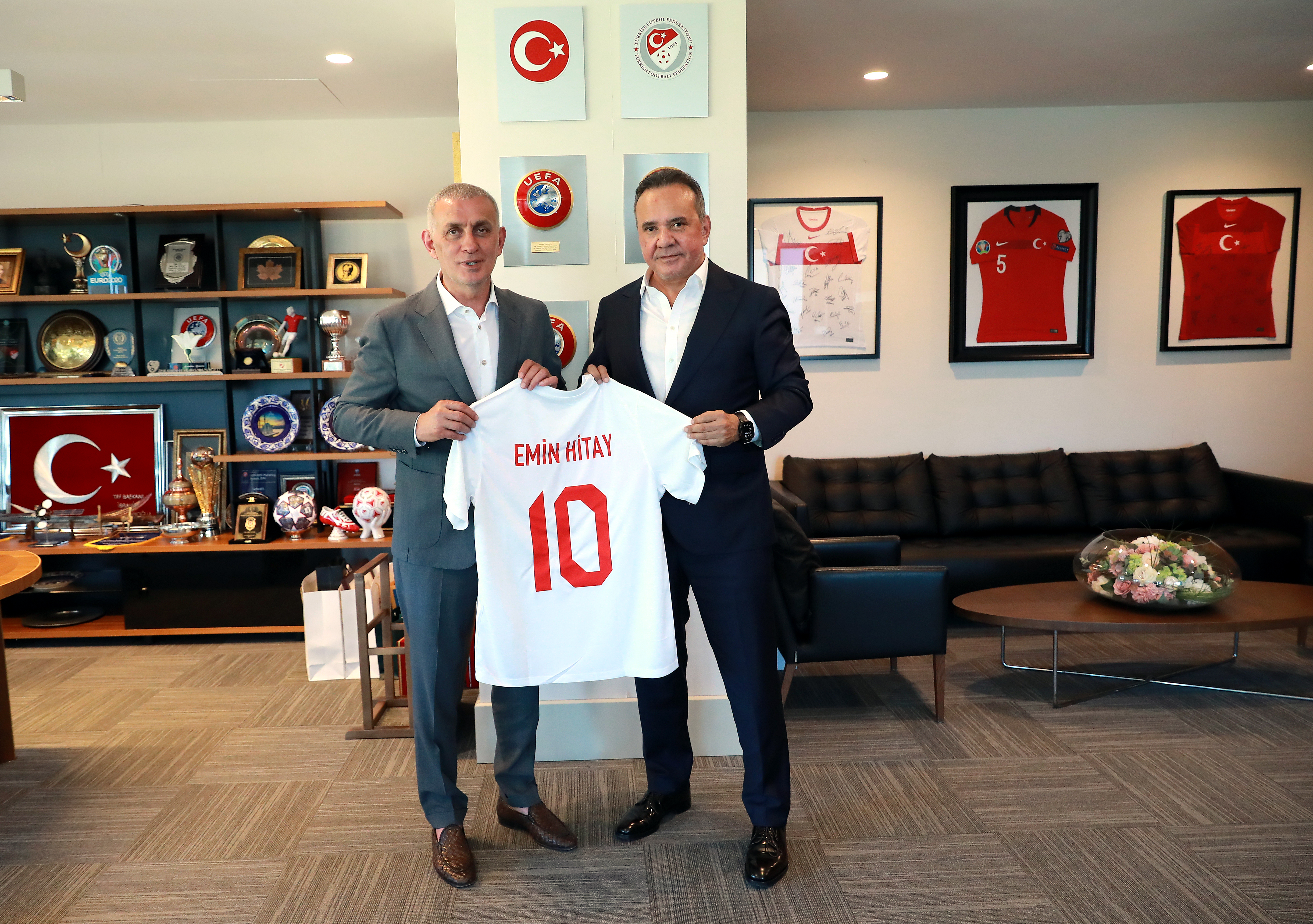 TFF Başkanı Hacıosmanoğlu ziyaretin sonunda Emin Hitay'a üzerinde isminin yazılı olduğu bir A Millî Takım forması hediye etti.