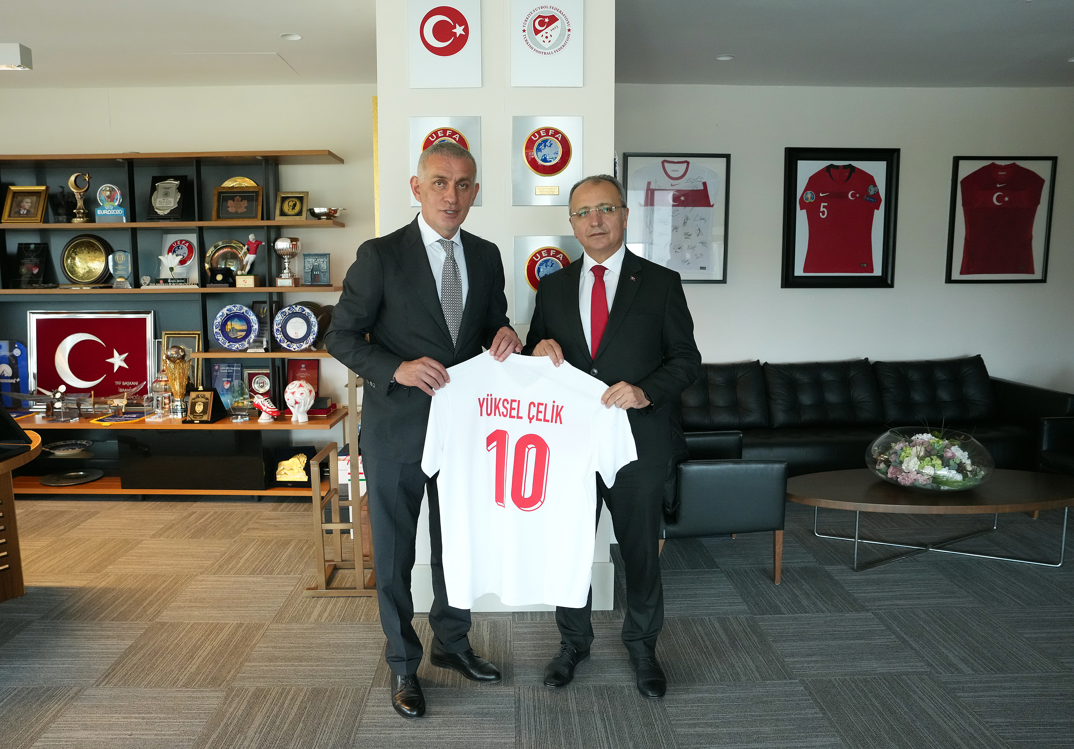 Riva Hasan Doğan Millî Takımlar Kamp ve Eğitim Tesisleri'nde gerçekleşen ziyaretin sonunda TFF Başkanı Hacıosmanoğlu, Yüksel Çelik'e A Millî Takım forması takdim ederken, Çelik de kendisine plaket hediye etti.
