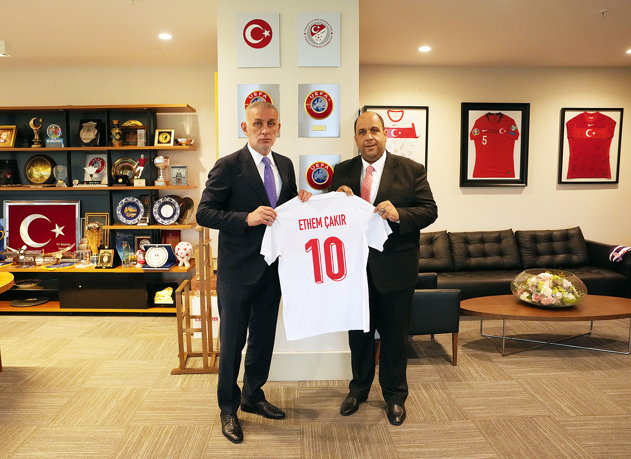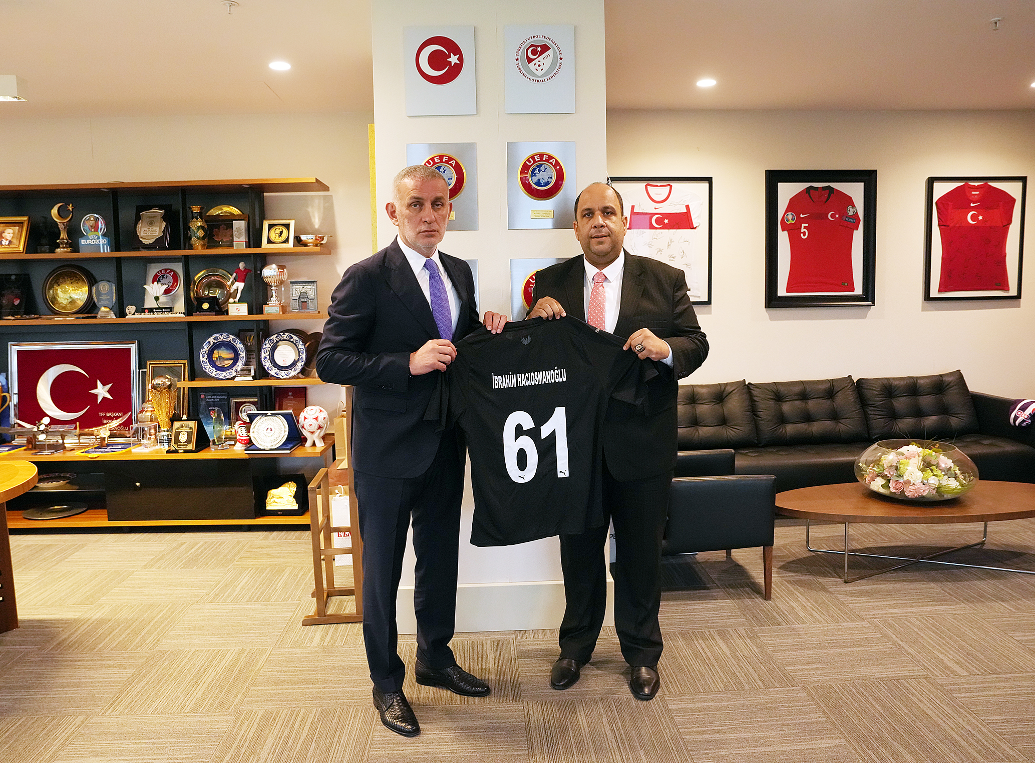 Trendyol 1. Lig ekiplerinden Atakaş Hatayspor Başkanı Ethem Çakır, Türkiye Futbol Federasyonu Başkanı İbrahim Ethem Hacıosmanoğlu'nu makamında ziyaret etti.