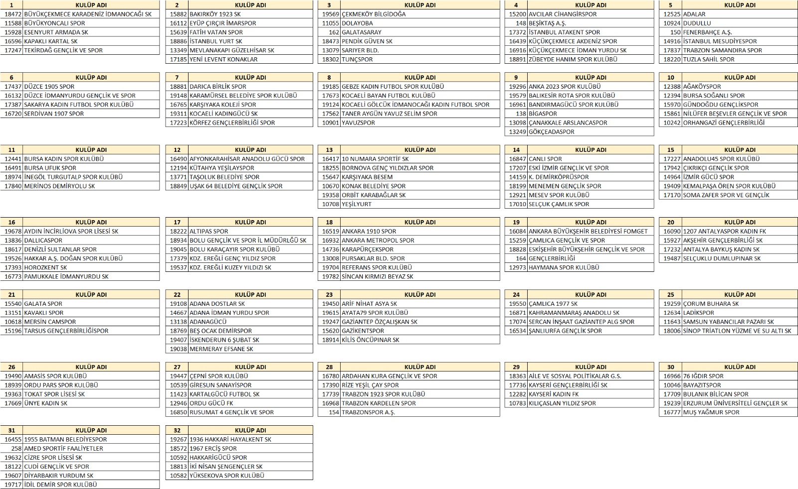 U17 Kızlar Gelişim Ligi 10 Ocak'ta Başlayacak 12.12.2025 U17 Kızlar Gelişim Ligi'nde 2025-2026 sezonu planlaması belli oldu. U17 Kızlar Gelişim Ligi'nin başlangıç tarihi 5 ve 6'lı gruplar için 10 Ocak, 4'lü gruplar için ise 17 Ocak olarak belirlenmiştir.Düzenlemeye göre; U17 Kızlar Gelişim Ligi coğrafi dağılıma ve illerdeki takım sayısına göre 32 grupta oynanacak. Cumartesi günü oynanması planlanan ligde müsabakalar çift devre lig usulünde gerçekleştirilecek.2025-2026 Sezonu TFF U17 Kızlar Gelişim Ligi Genel Esasları için tıklayınızTFF U17 Kızlar Gelişim Ligi Grupları için tıklayınızTFF U17 Kızlar Gelişim Ligi Maç Haftaları için tıklayınızTFF U17 Kızlar Gelişim Ligi 1. Grup Play-off Yol Haritası için tıklayınızTFF U17 Kızlar Gelişim Ligi 2. Grup Play-off Yol Haritası için tıklayınızTFF U17 Kızlar Gelişim Ligi 3. Grup Play-off Yol Haritası için tıklayınızTFF U17 Kızlar Gelişim Ligi 4. Grup Play-off Yol Haritası için tıklayınız Diğer Haberler Kadın Futbol Liglerinde Haftanın Programı Kadın Futbol Liglerinde Haftanın Sonuçları Kadın Futbol Liglerinde Haftanın Programı Teknik Alan Direktörleri Koordinasyon Toplantısı Yapıldı U17 Kızlar Gelişim Ligi'ne Katılacak Takımlar Belli Oldu Kadın Futbol Liglerinde Haftanın Sonuçları Kadın Futbol Liglerinde Haftanın Programı Kadın Futbol Liglerinde Haftanın Sonuçları Kadın Futbol Liglerinde Haftanın Programı Turkcell Kadın Futbol Süper Ligi'nde 4. Haftanın Sonuçları [ «« ] [ « ]1 - 2 - 3 - 4 - 5 - 6 - 7 - 8 - 9 - 10[ » ] [ »» ]