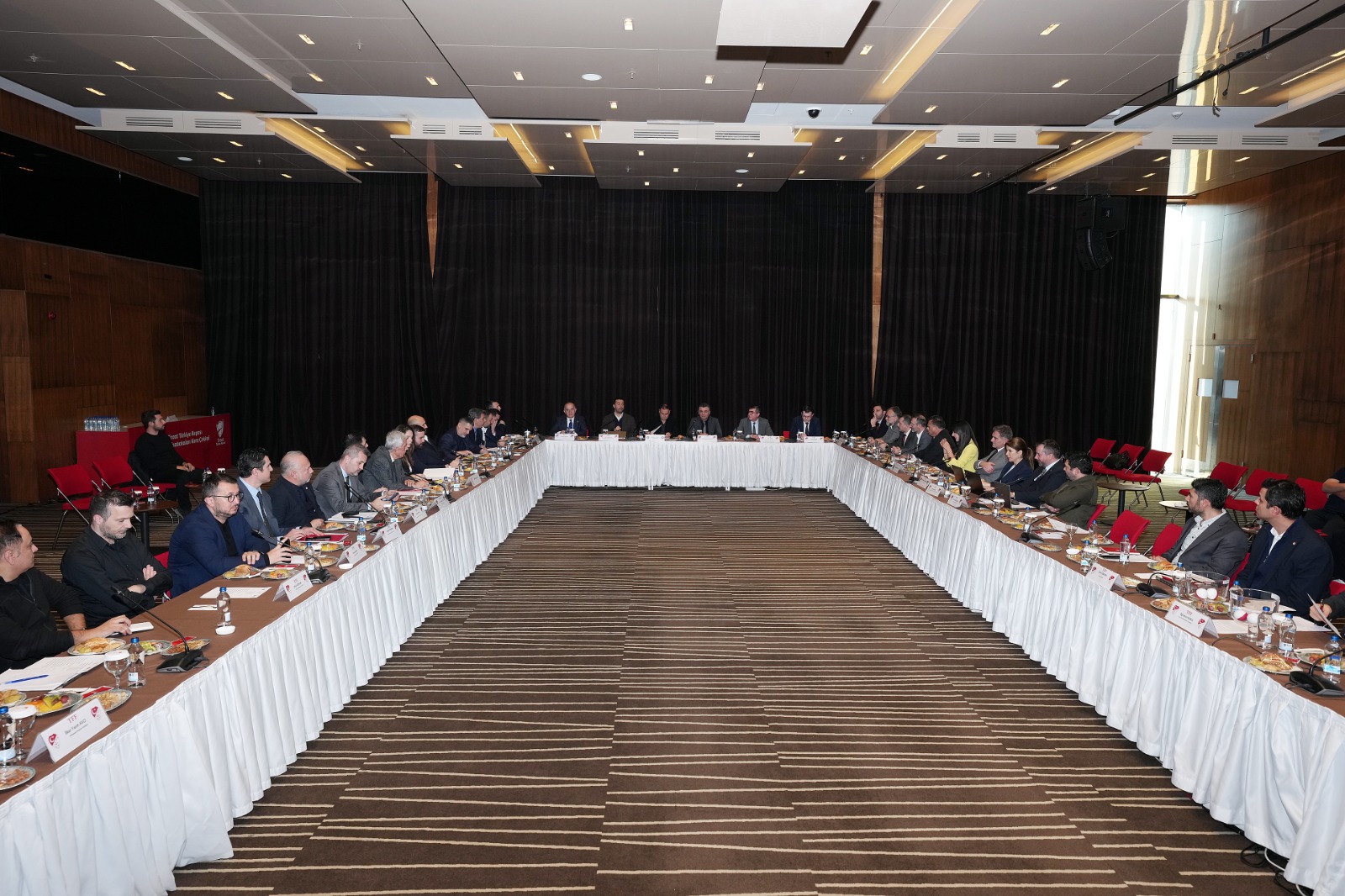 Hasan Doğan Millî Takımlar Kamp ve Eğitim Tesisleri'ndeki toplantıya Türkiye Futbol Federasyonu 2. Başkan Vekili, İcra Kurulu Üyesi, Hukuk, İdari ve Mali İşlerden Sorumlu Yönetim Kurulu Üyesi Fuat Göktaş, TFF Ar-Ge'den Sorumlu Yönetim Kurulu Üyesi Hasan Surözü, TFF Sportif İşlerden Sorumlu Genel Sekreter Yardımcısı Özcan Şepik, Galatasaray A.Ş., Trabzonspor A.Ş., Fenerbahçe A.Ş. ve Samsunspor A.Ş. kulüplerinin temsilcileri, il emniyet müdürlüğü, gençlik spor il müdürlüğü ve stadyumların yetkilileri ile TFF görevlileri katıldı.