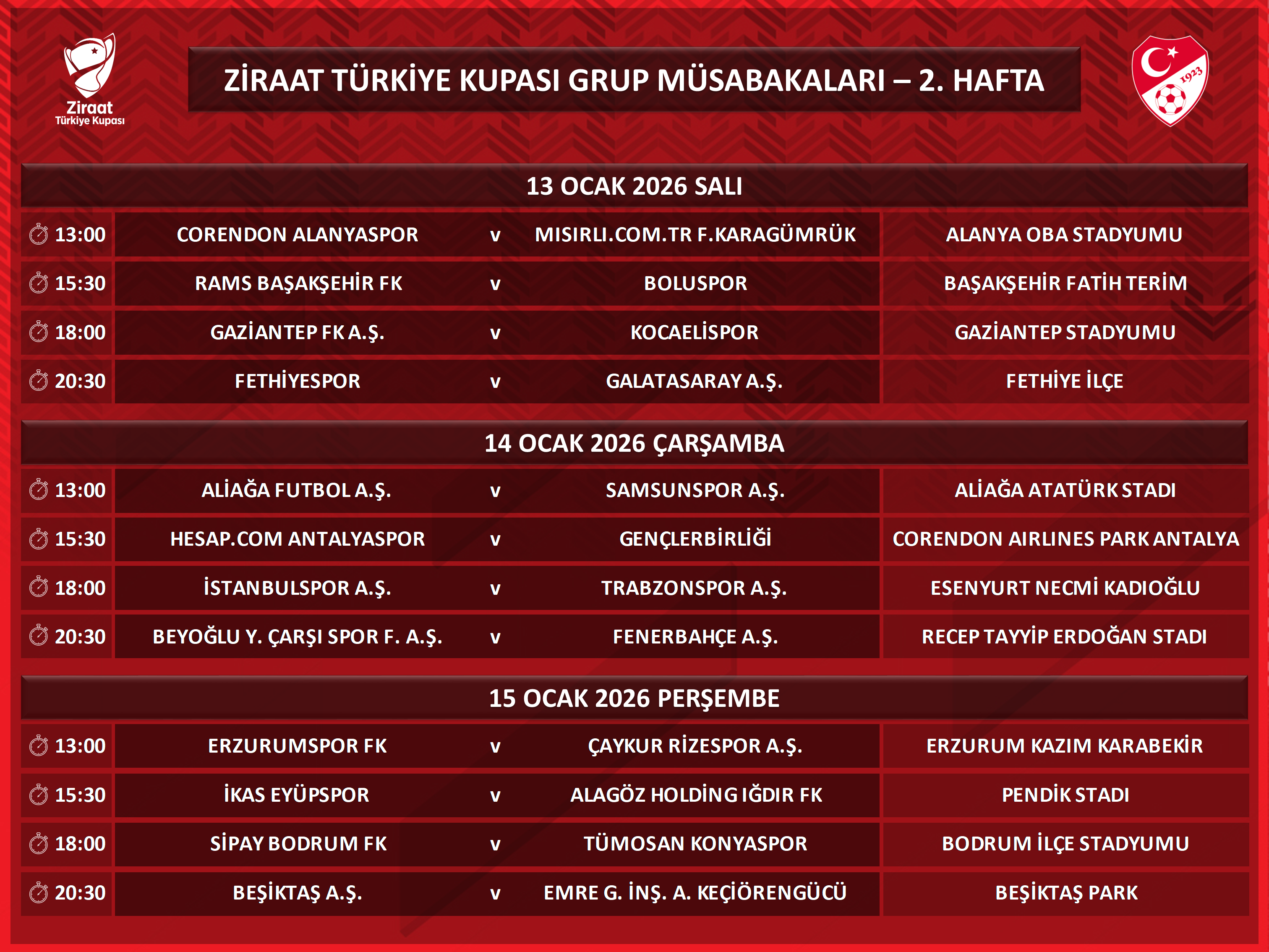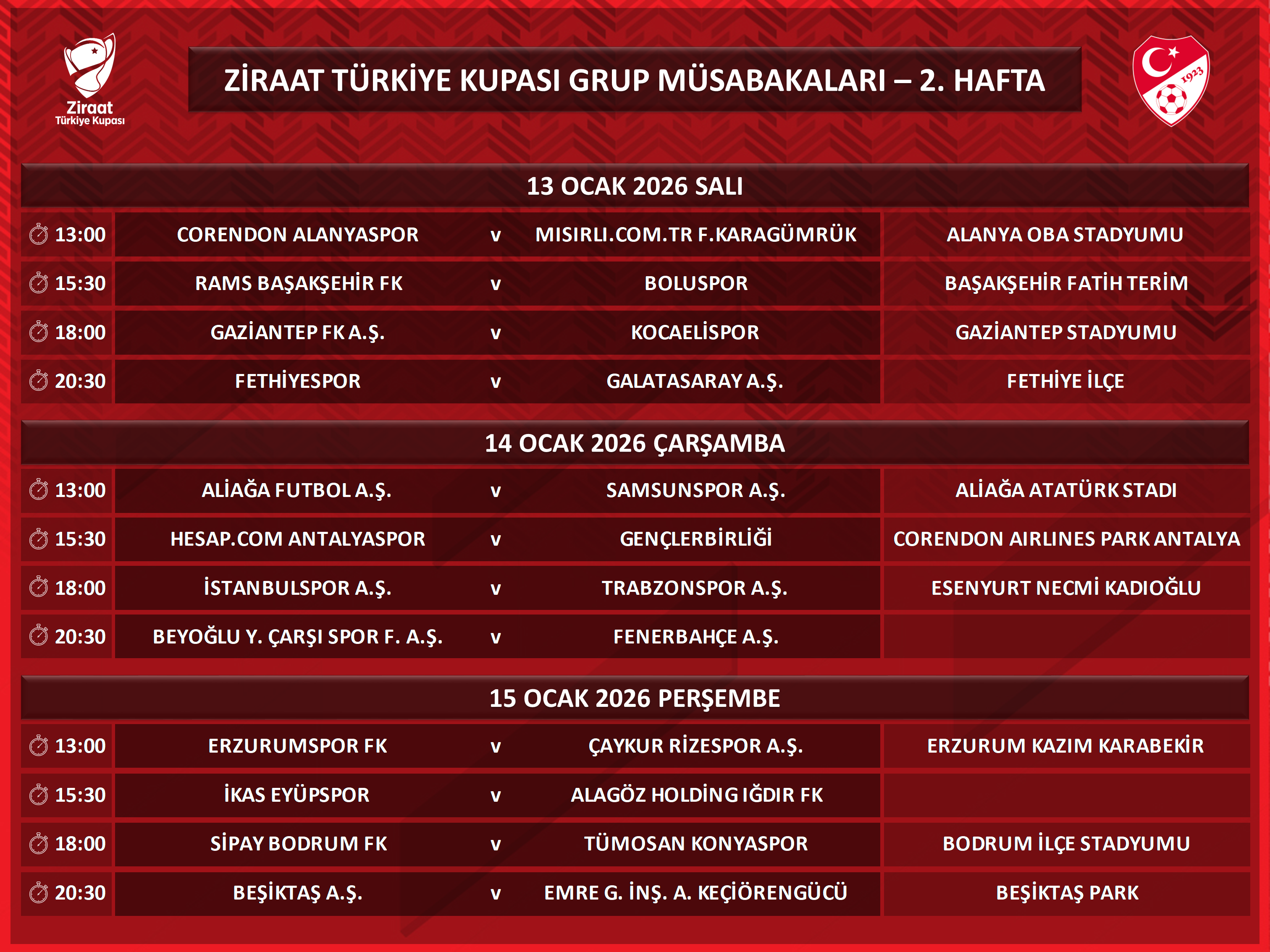 Ziraat Türkiye Kupası Grup 2. Maçlarının Programı Açıklandı 22.12.2025