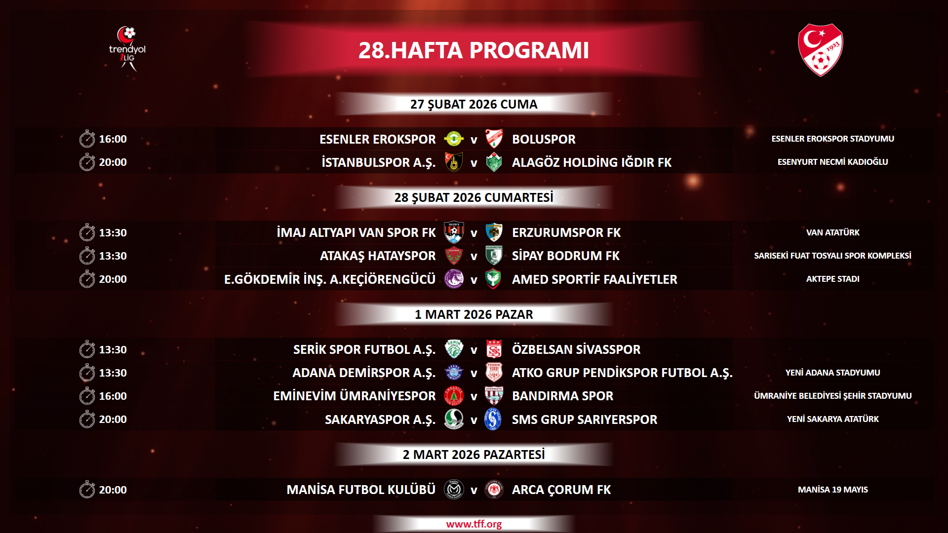 Saha bilgisi boş bırakılmış müsabakaların hangi stadyumda oynanacağı daha sonra ilan edilecektir.