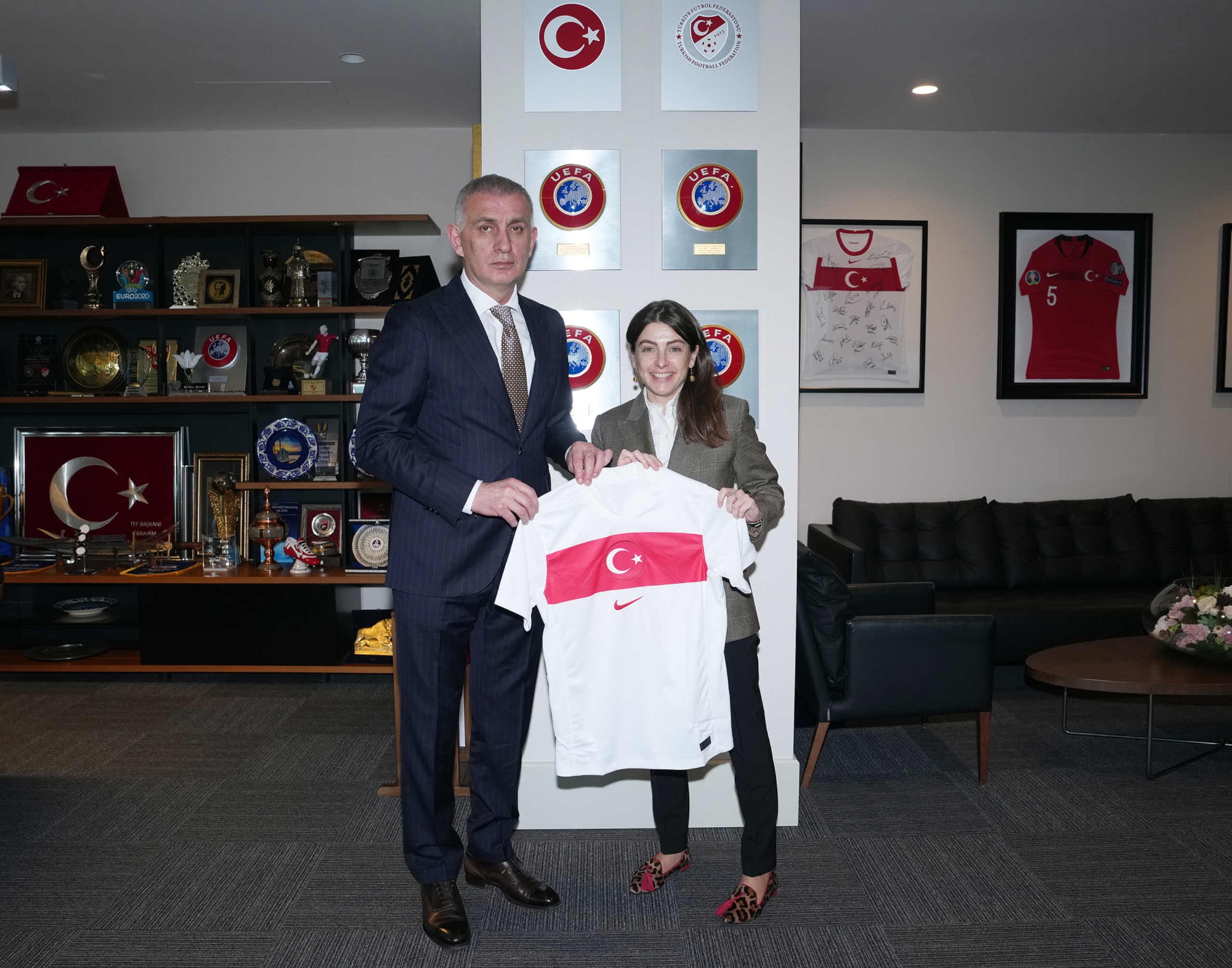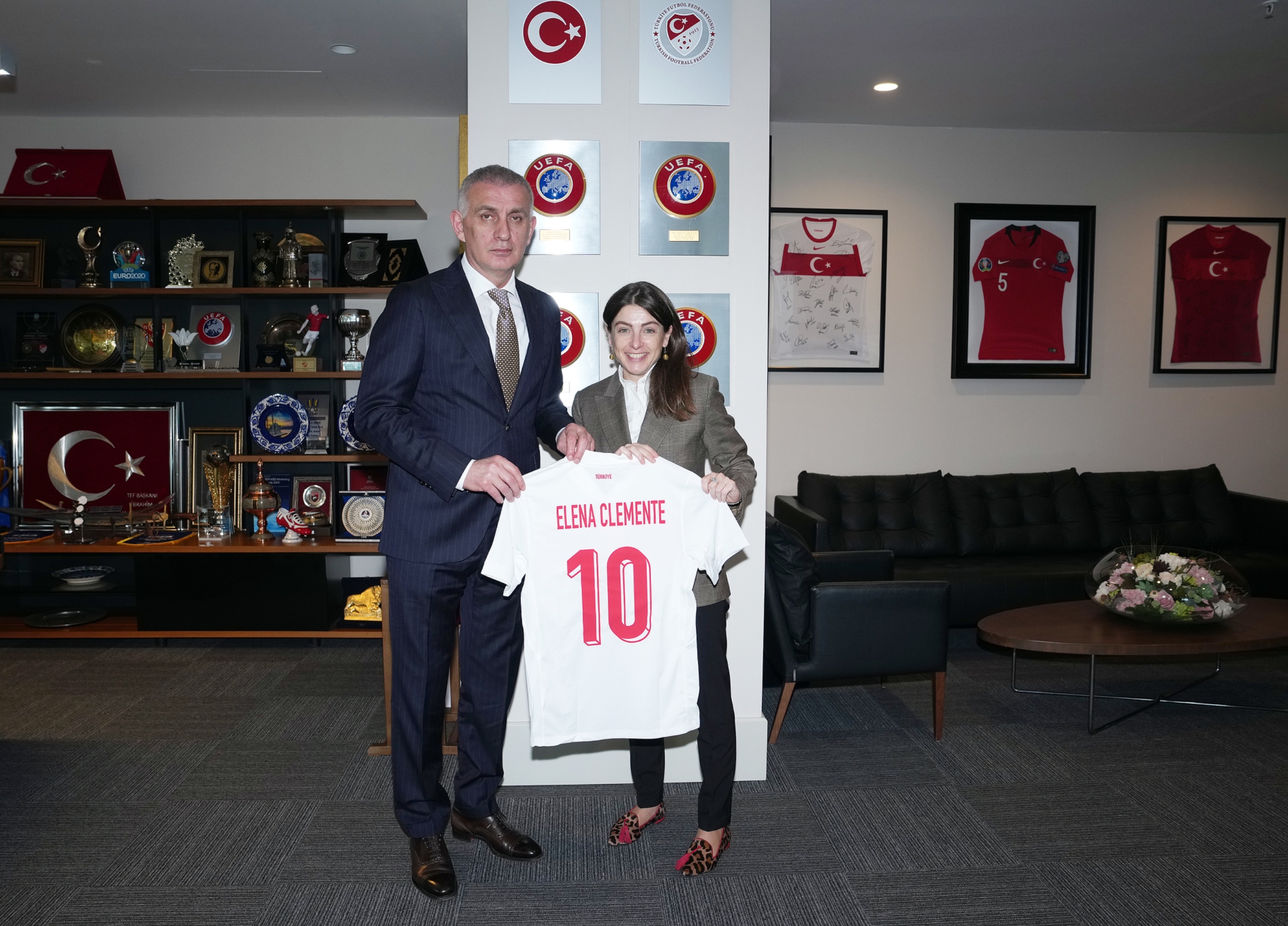 Ziyaretin sonunda TFF Başkanı Hacıosmanoğlu, Elena Clemente'ye üzerinde isminin yazılı olduğu bir A Millî Takım forması ve bir plaket takdim etti.