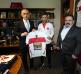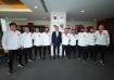 Millî Takım oyuncuları ve teknik direktör Ramazan Karacif'i başarılarından dolayı tebrik eden Başkan Hacıosmanoğlu, ziyaretin sonunda misafirlerine üzerinde isimlerinin yazılı olduğu A Millî Takım formaları hediye etti. Ziyaret plaket takdimi ve toplu fotoğraf çekimiyle sona erdi.