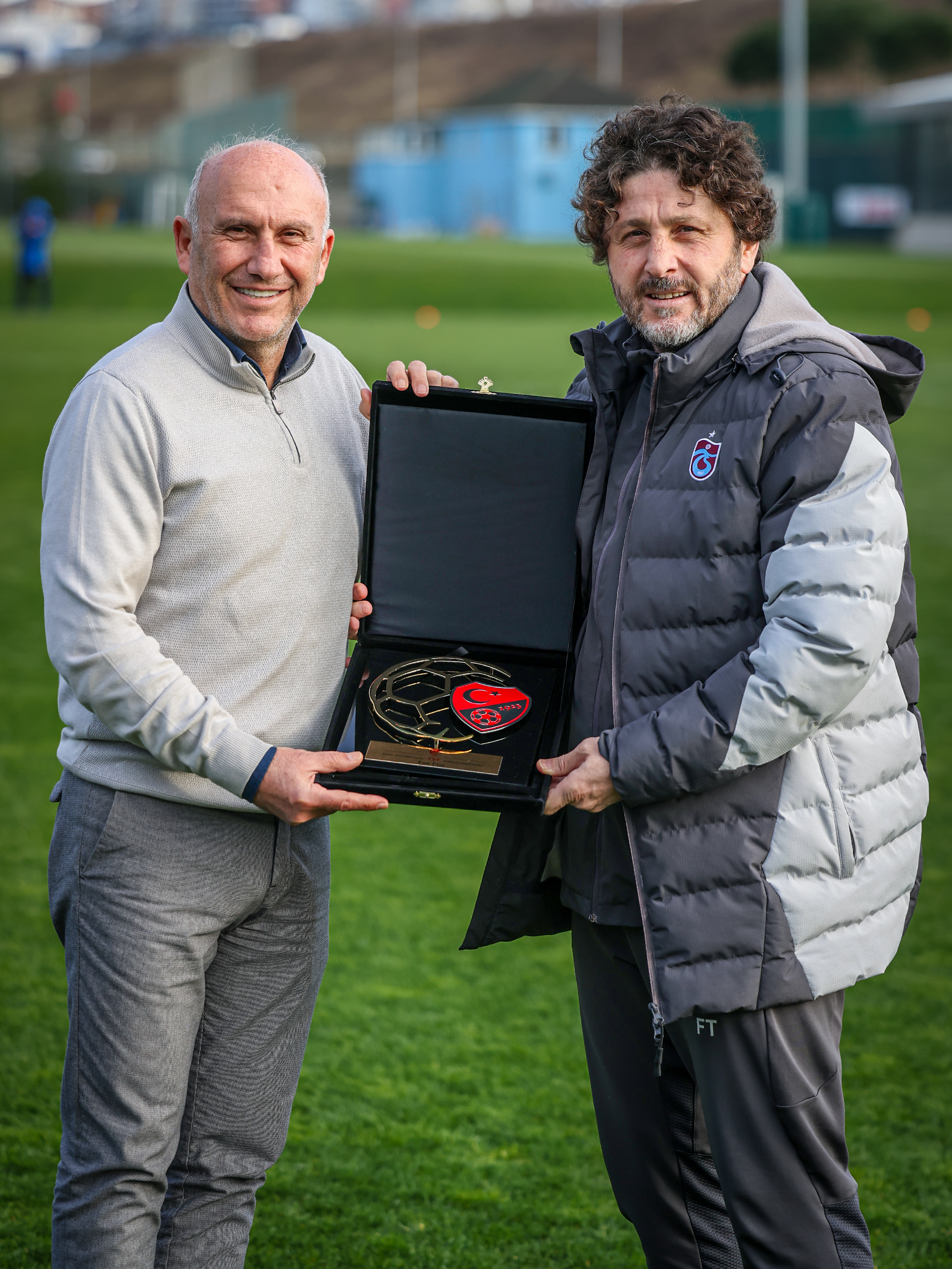 Trabzonspor Teknik Direktörü Fatih Tekke'ye Sosyal Sorumluluk Ödülü'nü TFF Trabzon Bölge Temsilcisi Hamdi Aslan verdi. Bordo-mavili ekibin teknik direktörü ödülü geçen perşembe günü antrenman öncesinde takdim edildi.