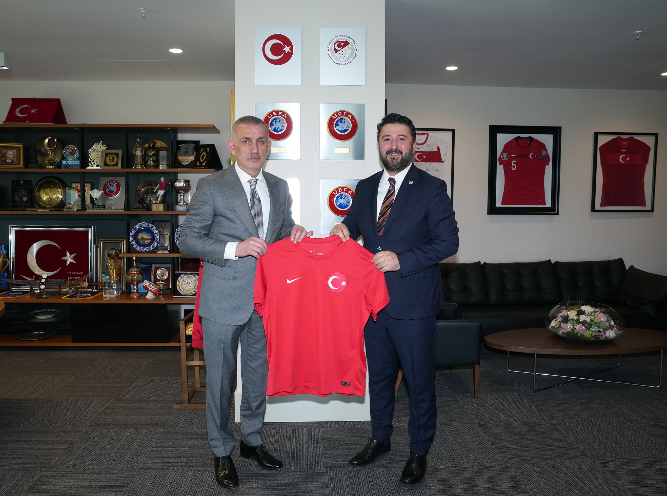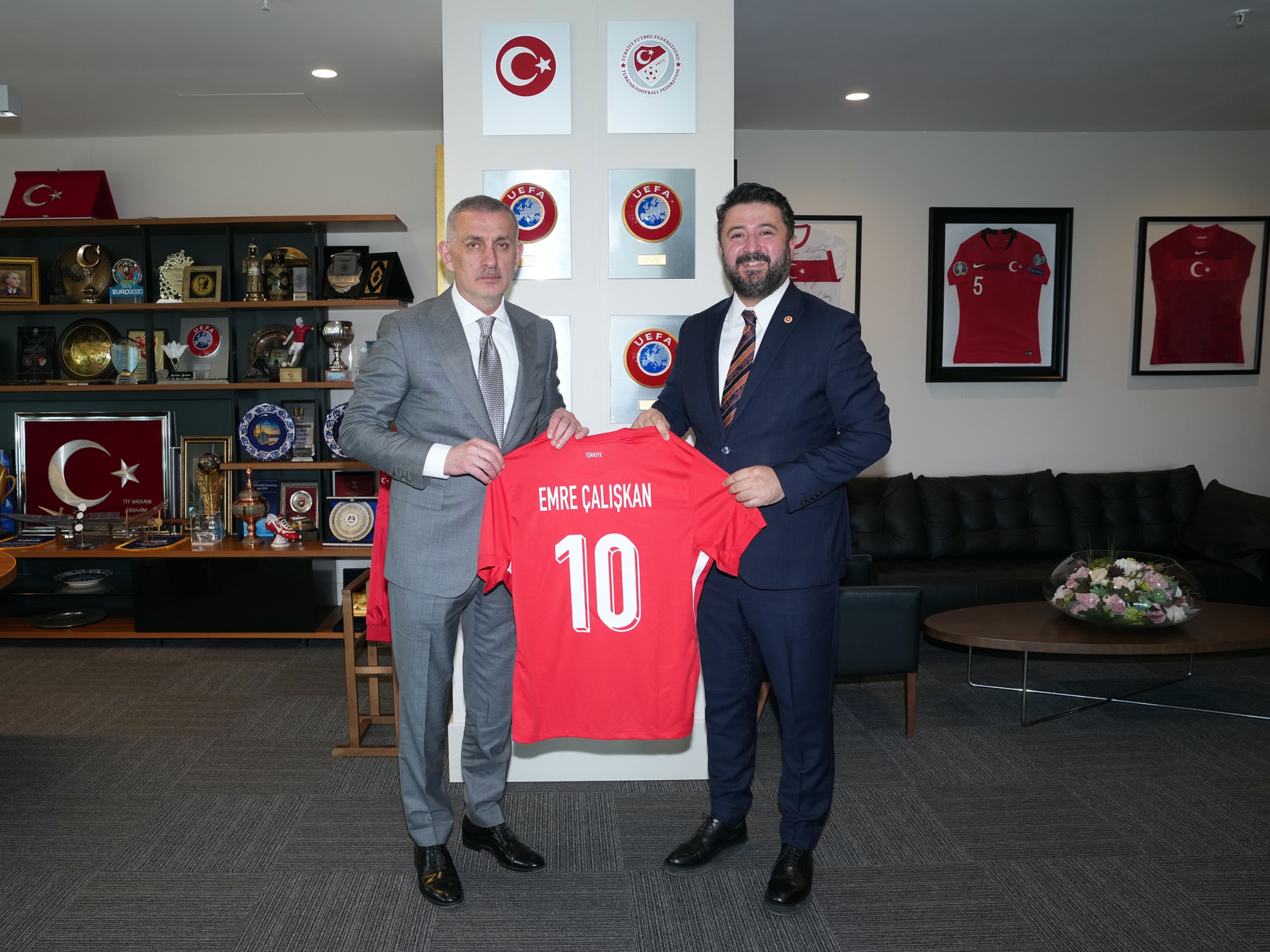 Ziyaretin sonunda TFF Başkanı Hacıosmanoğlu, Emre Çalışkan'a üzerinde isminin yazılı olduğu bir A Millî Takım forması hediye etti.