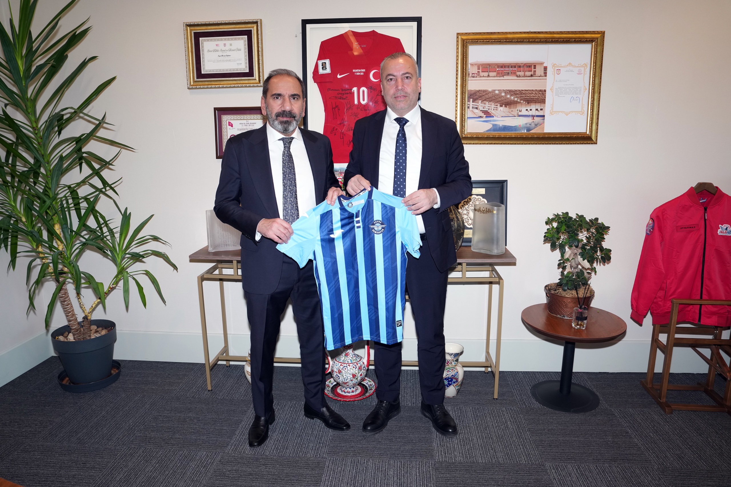 Riva Hasan Doğan Millî Takımlar Kamp ve Eğitim Tesisleri'nde gerçekleşen ziyaretin ardından Ertan Zeybek, TFF 1. Başkan Vekili Başkanı Mecnun Otyakmaz'a üzerinde isminin yazılı olduğu bir Adana Demirspor forması hediye etti.