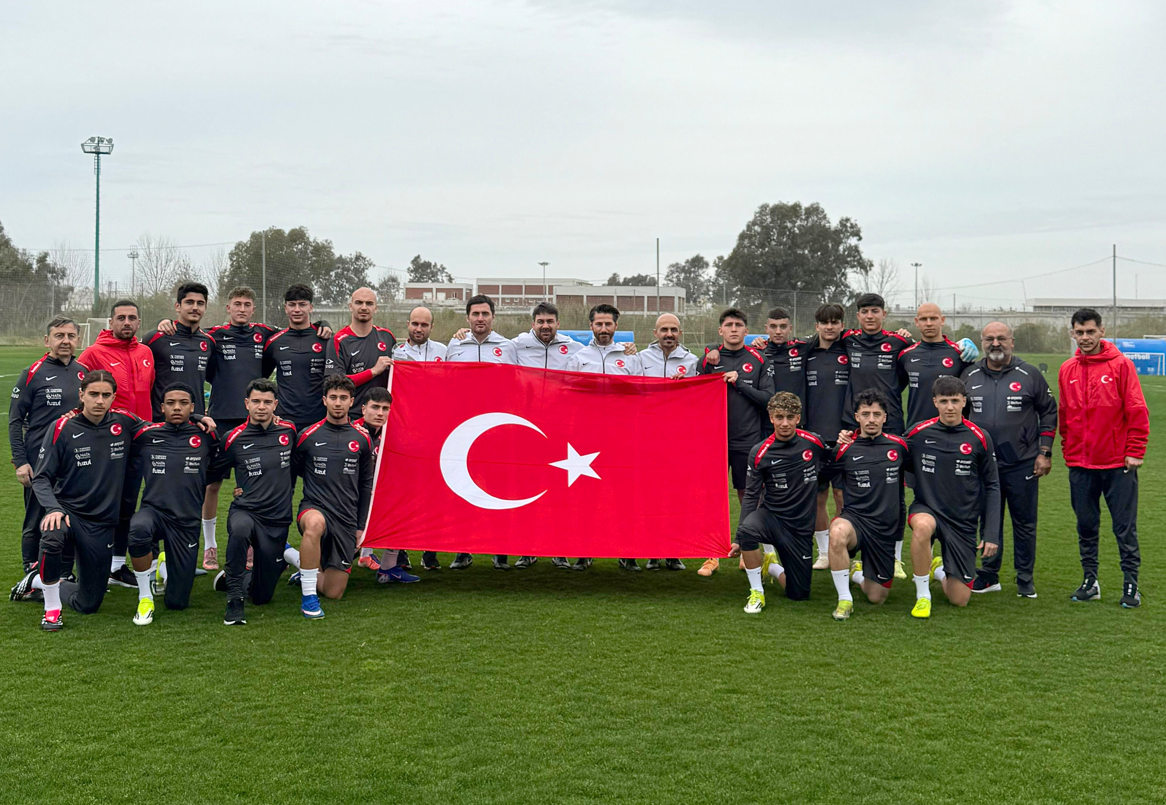 U18 Millî Takımımızın teknik heyeti, futbolcuları ve çalışanları antrenman öncesinde saygı duruşunda bulundu ve Türk bayrağı ile fotoğraf çektirdi.
