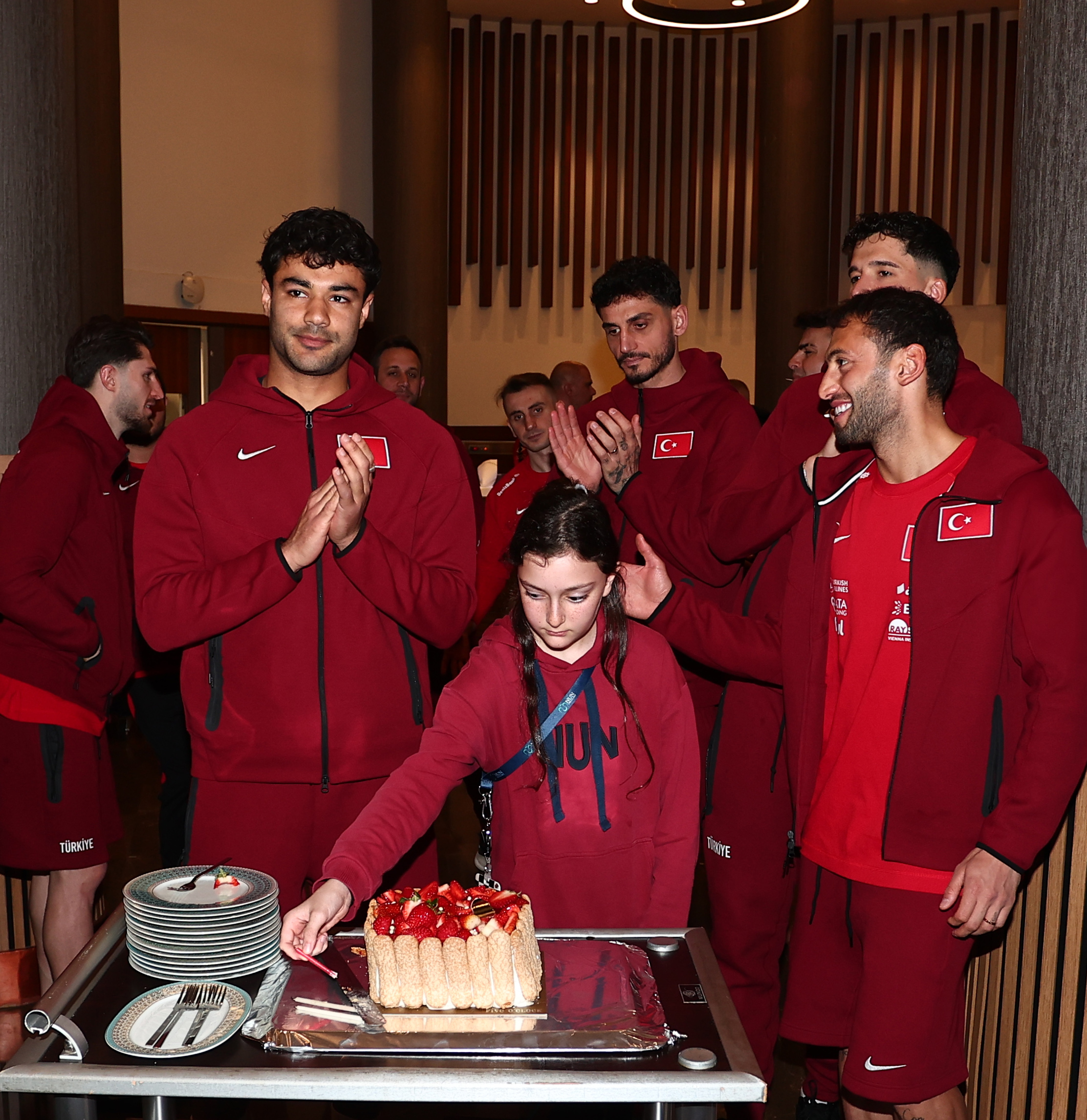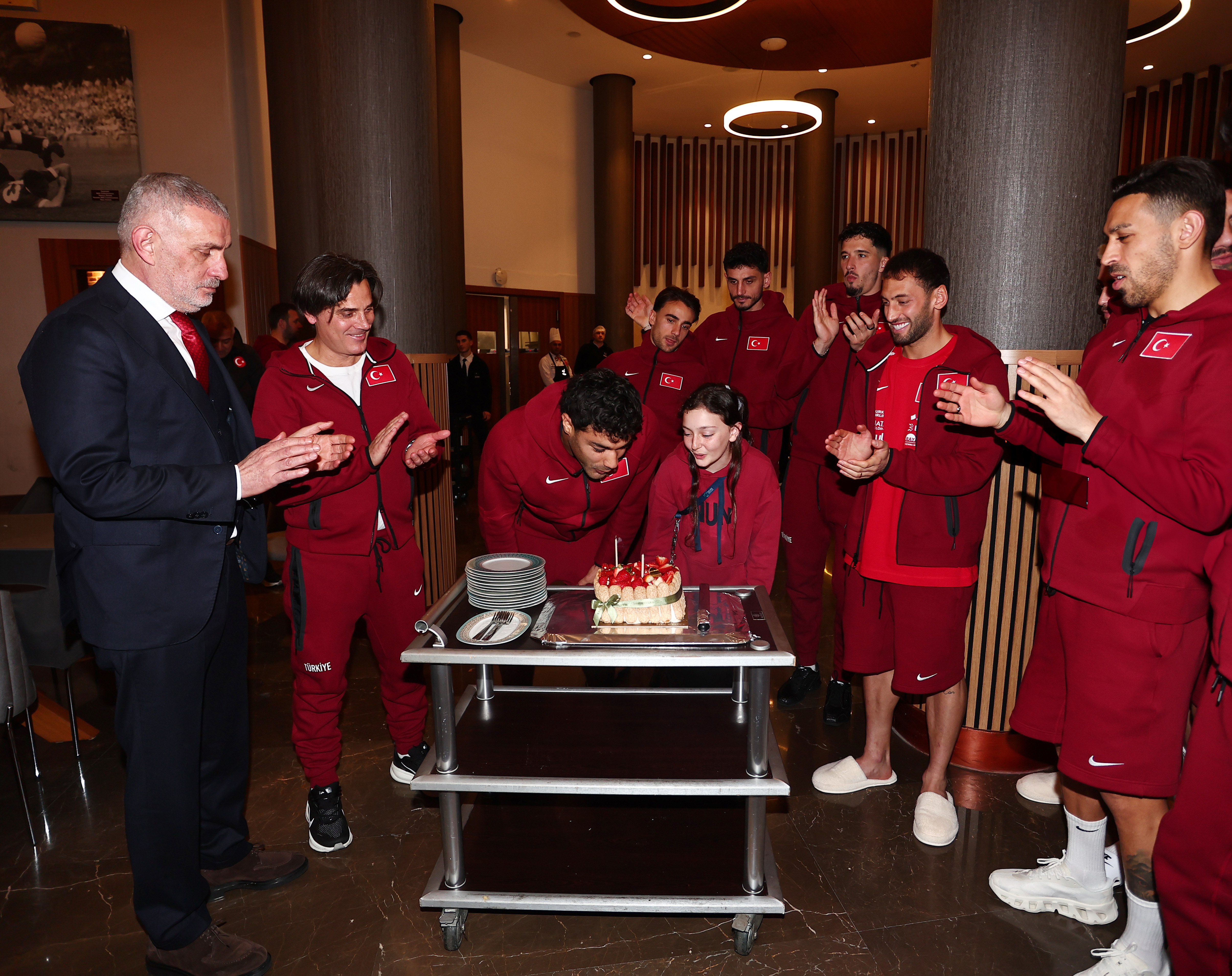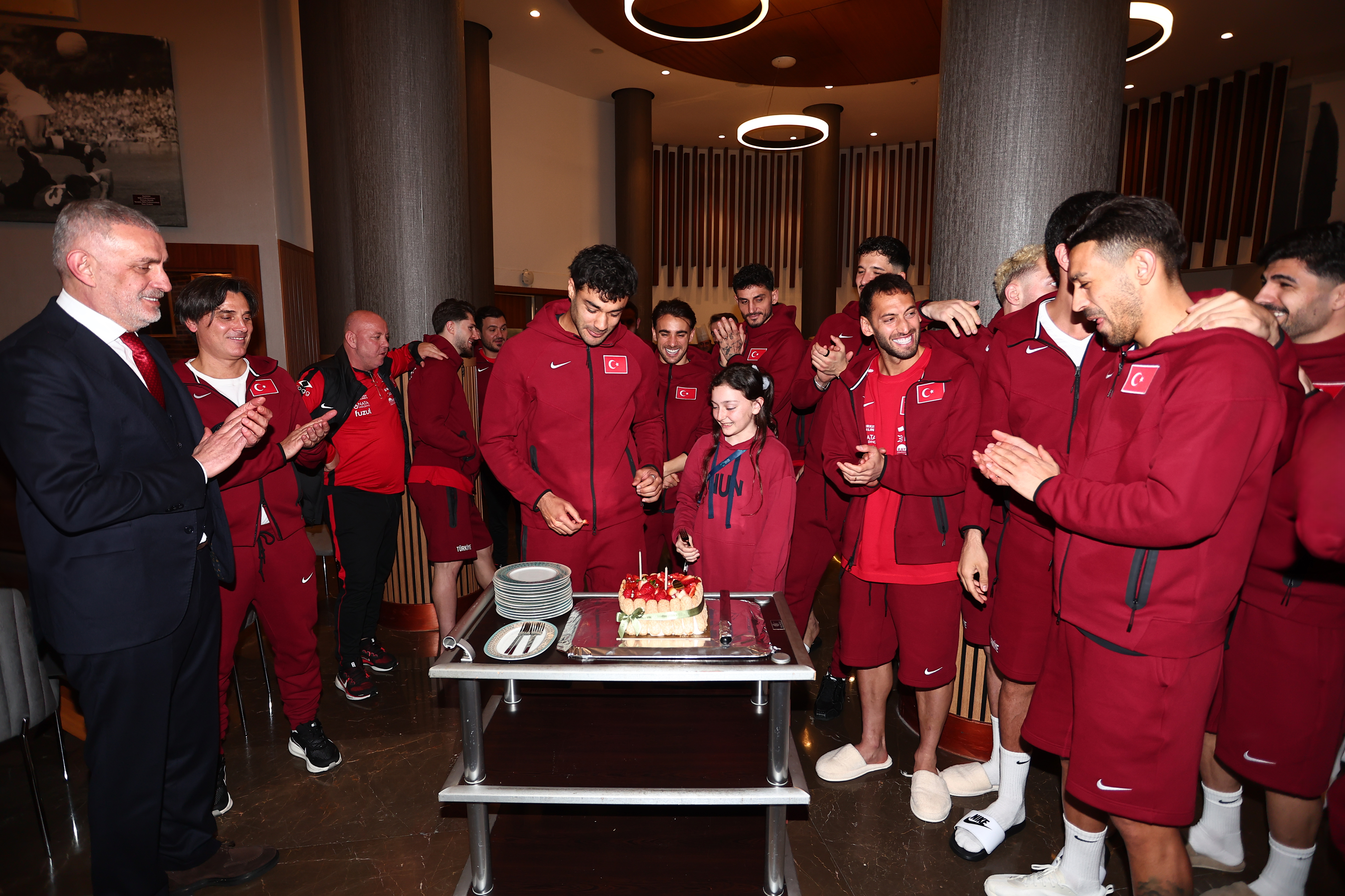 A Millî Takımımızın 2026 Dünya Kupası play-off maçları için toplandığı kampta, bugün 26 yaşına basan millî futbolcumuz Ozan Kabak için pasta kesildi.