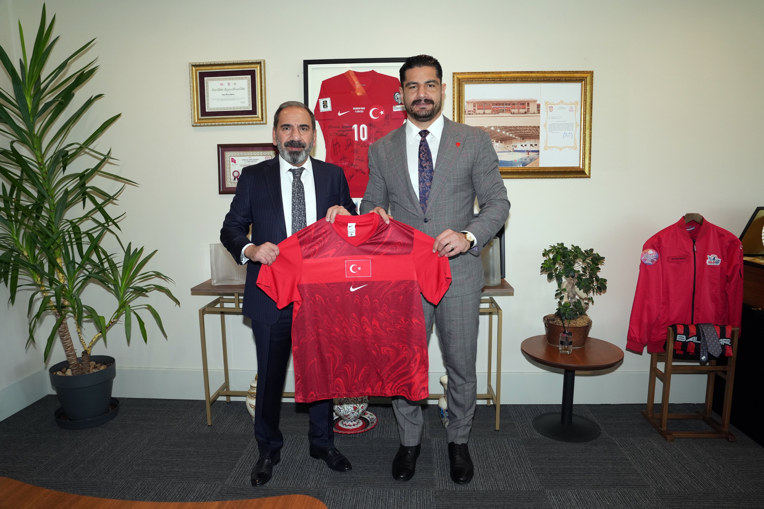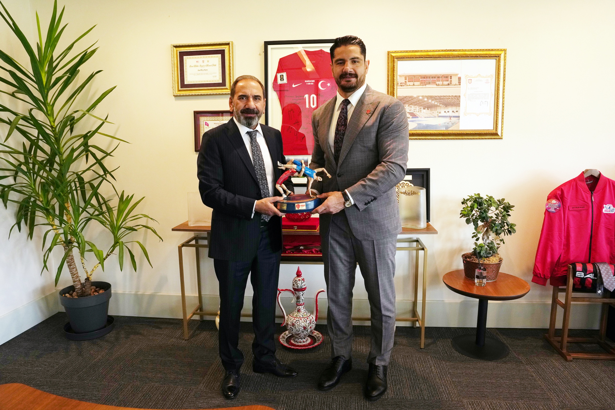 Türkiye Güreş Federasyonu Başkanı Taha Akgül; TFF 1. Başkan Vekili, İcra Kurulu Üyesi, A Millî Takım ve Süper Lig'den Sorumlu Yönetim Kurulu Üyesi Mecnun Otyakmaz'ı makamında ziyaret etti.