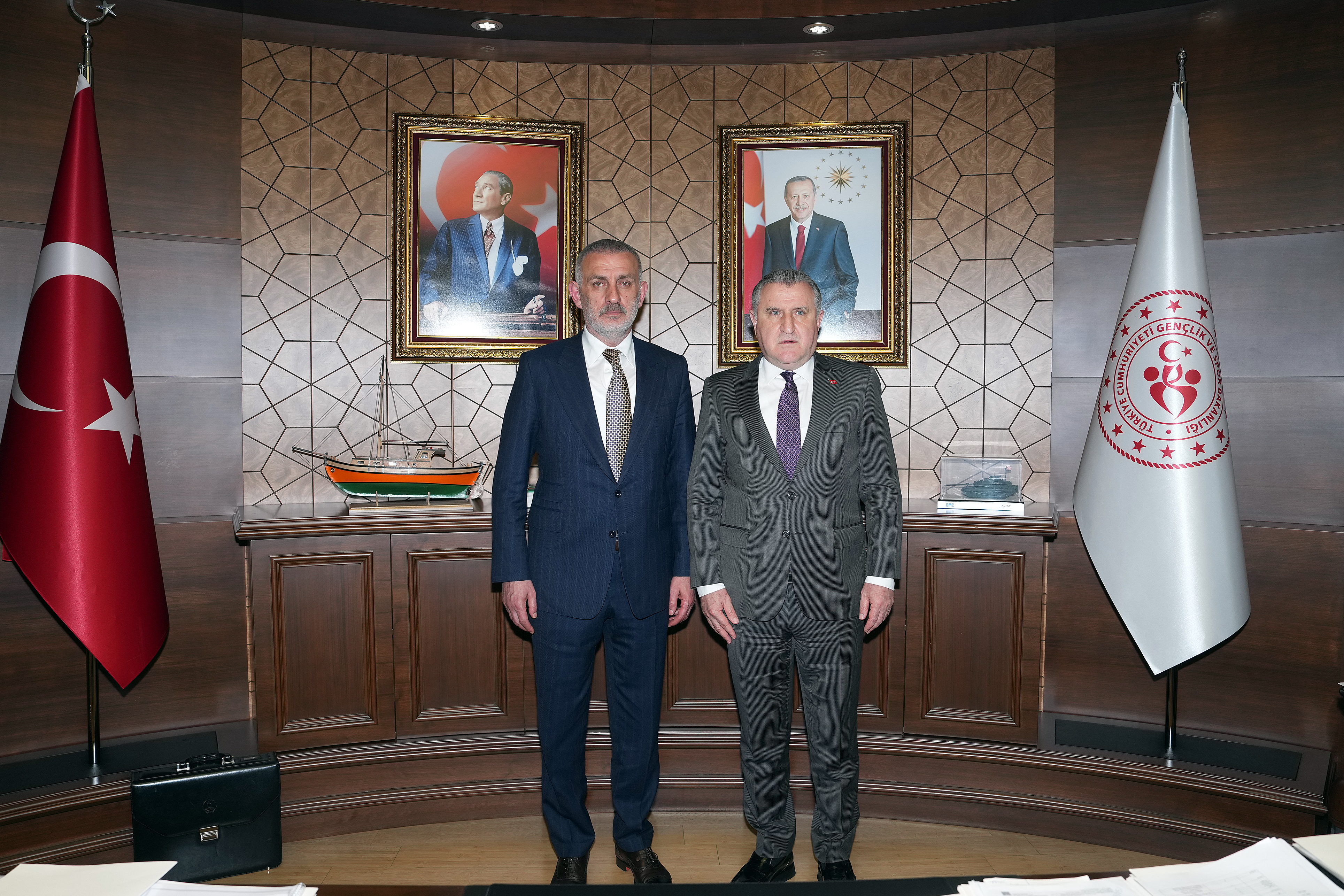 Başkent Ankara'da görüşmeler yapan Türkiye Futbol Federasyonu Başkanı İbrahim Ethem Hacıosmanoğlu, T.C. Gençlik ve Spor Bakanı Dr. Osman Aşkın Bak'a ziyarette bulundu.