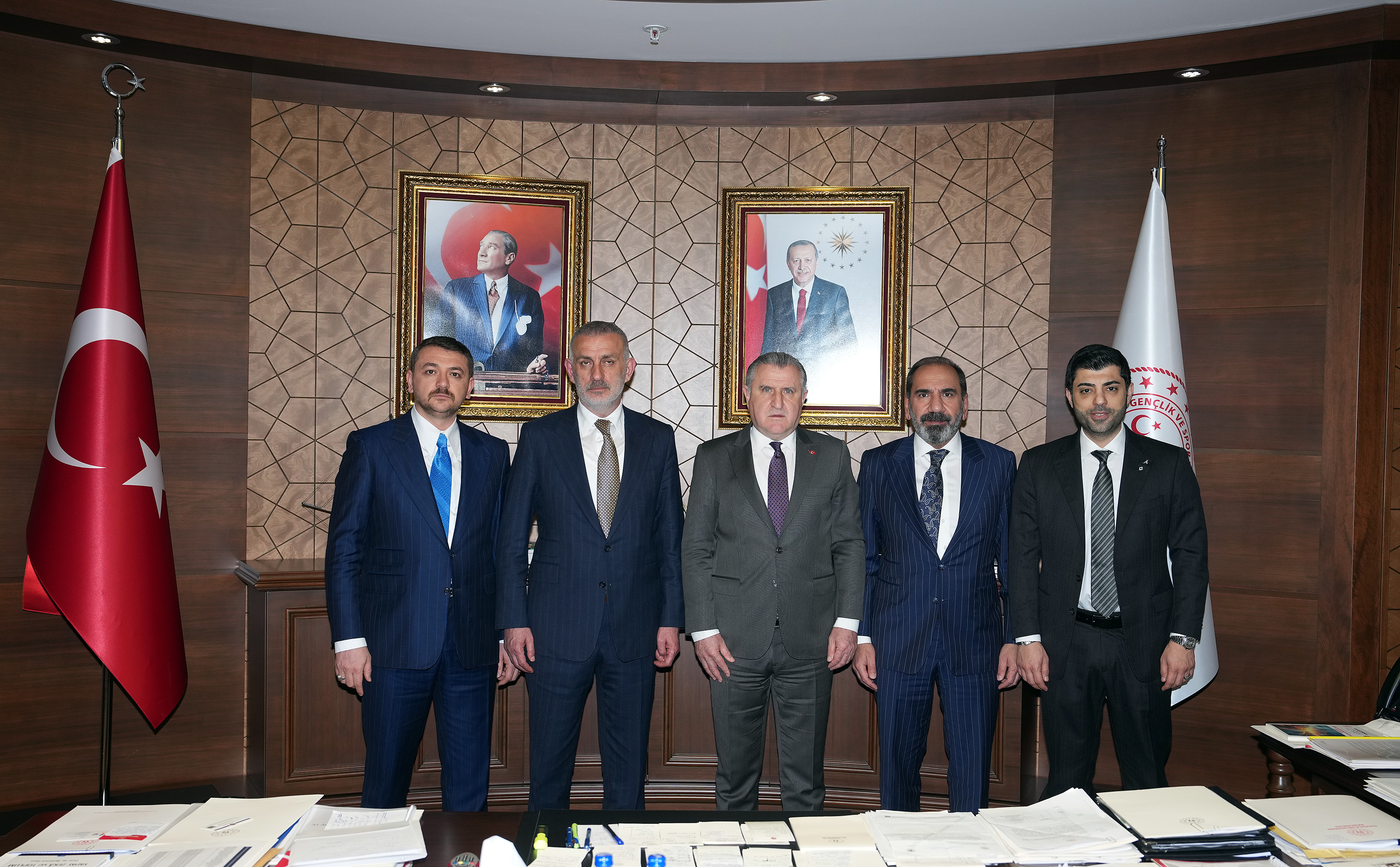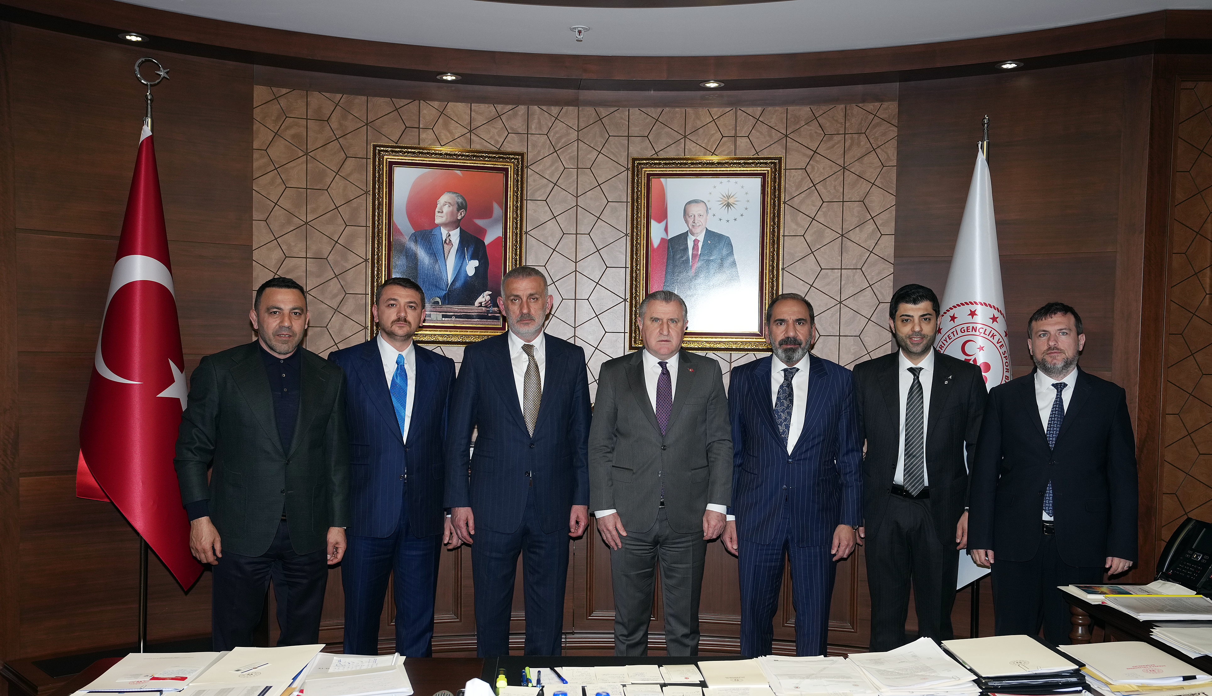 Bakanlık makamında gerçekleşen görüşmede TFF Başkan Vekili Mecnun Otyakmaz ile TFF Yönetim Kurulu Üyeleri Cengiz Gökay ve Bilal Arslan'ın yanı sıra T.C. Gençlik ve Spor Bakan Yardımcısı Hamza Yerlikaya da yer aldı.