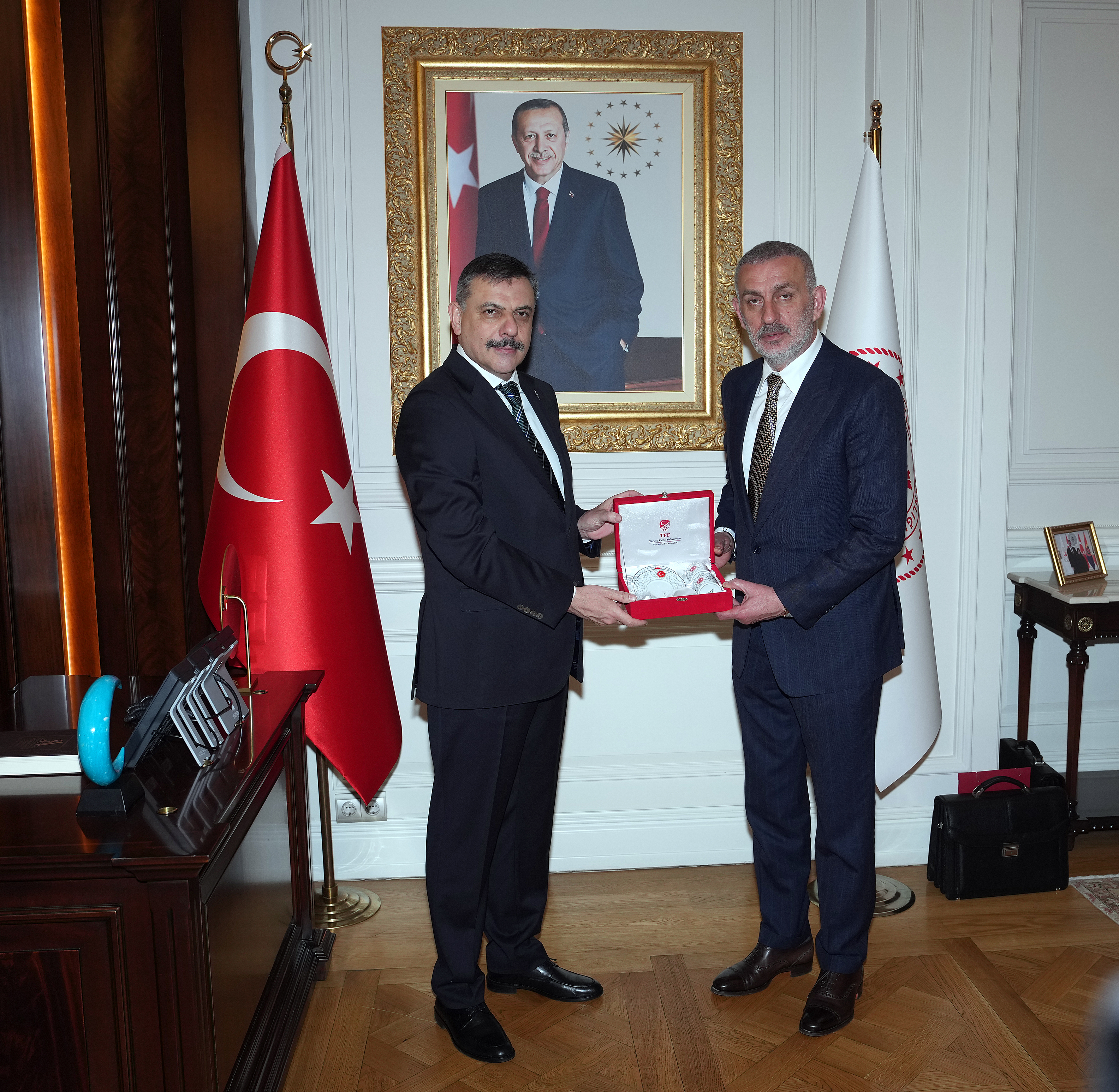 Bakanlık makamında gerçekleşen görüşmede TFF Başkan Vekili Mecnun Otyakmaz ile TFF Yönetim Kurulu Üyeleri Cengiz Gökay ve Bilal Arslan da yer aldı.