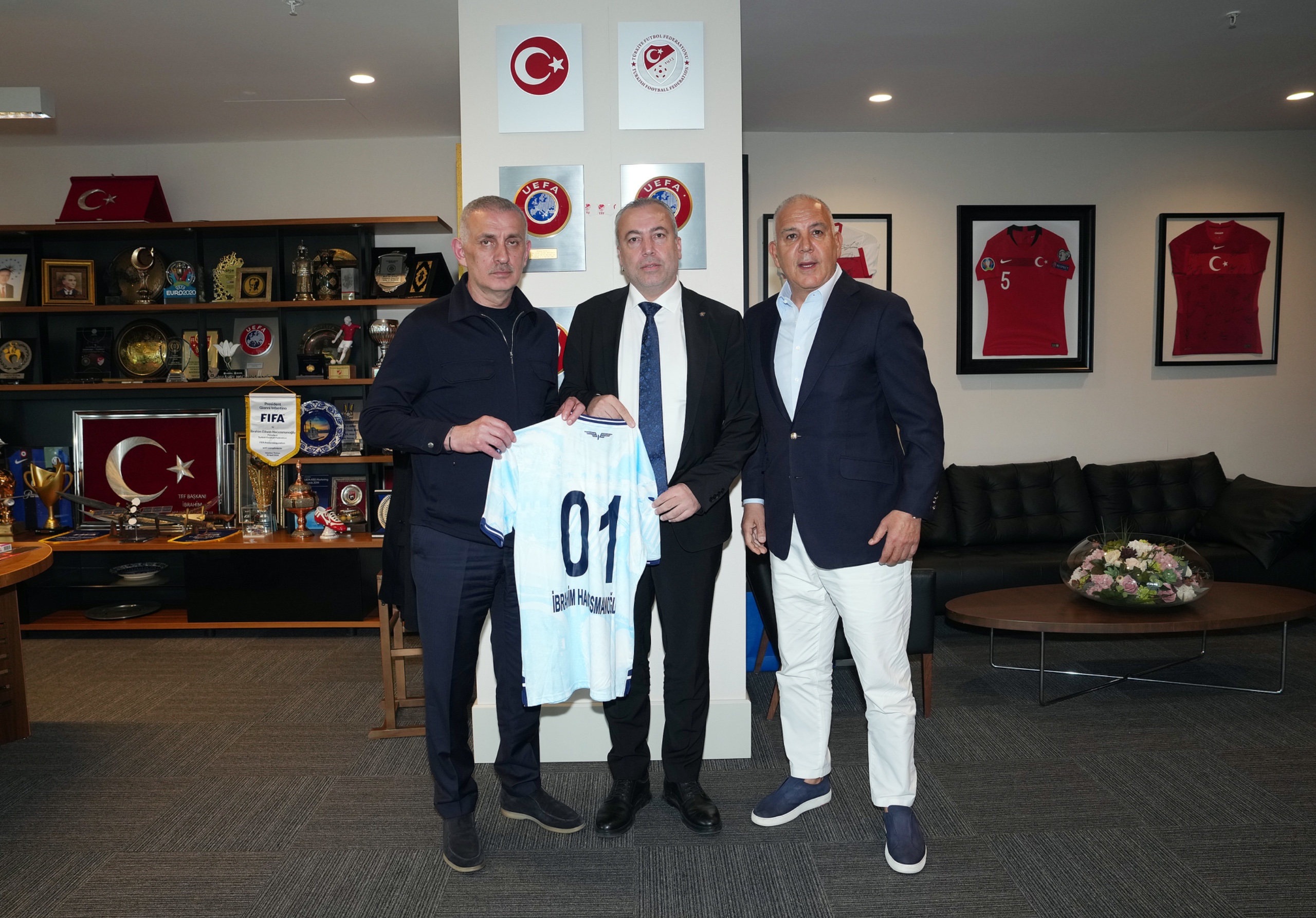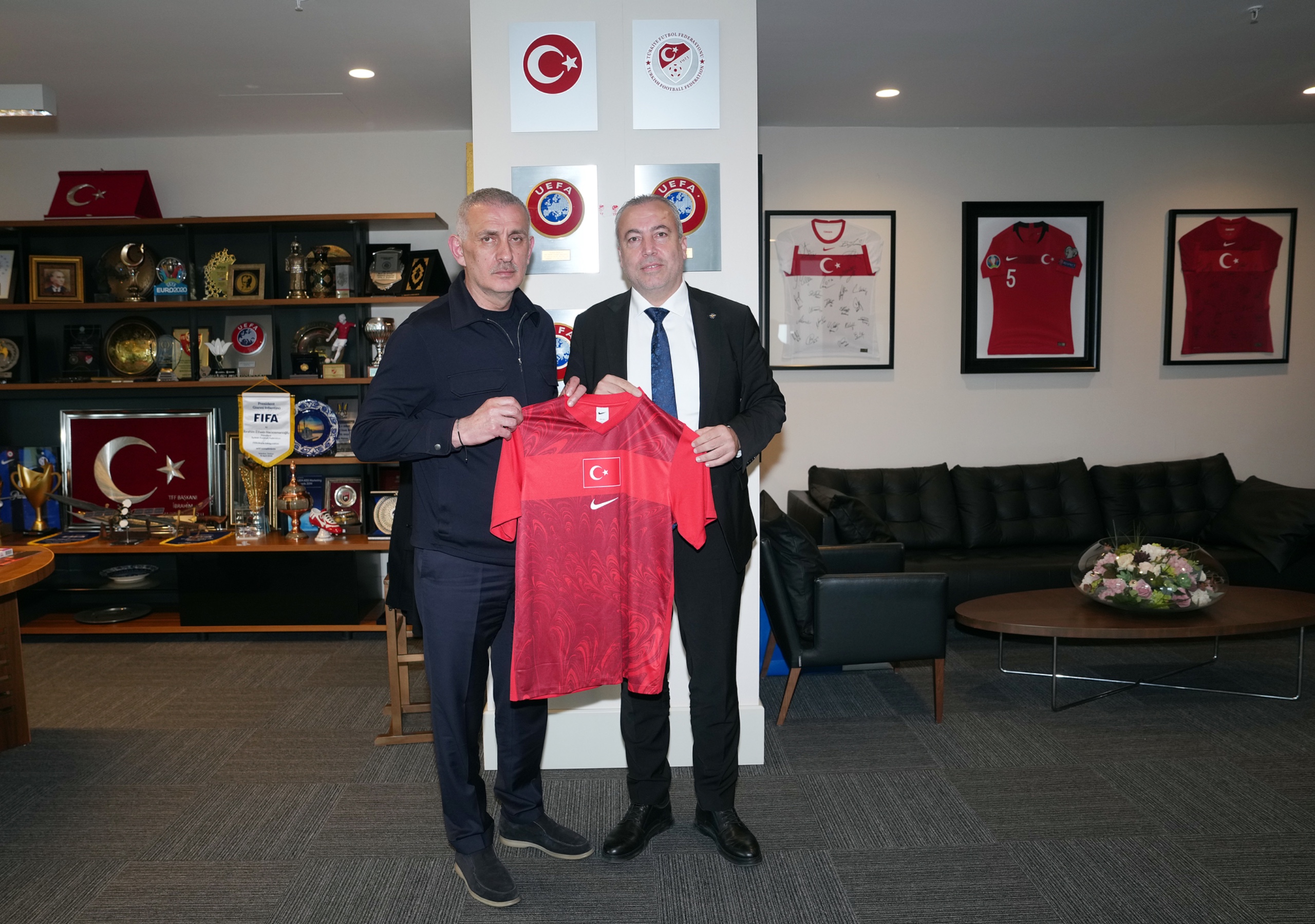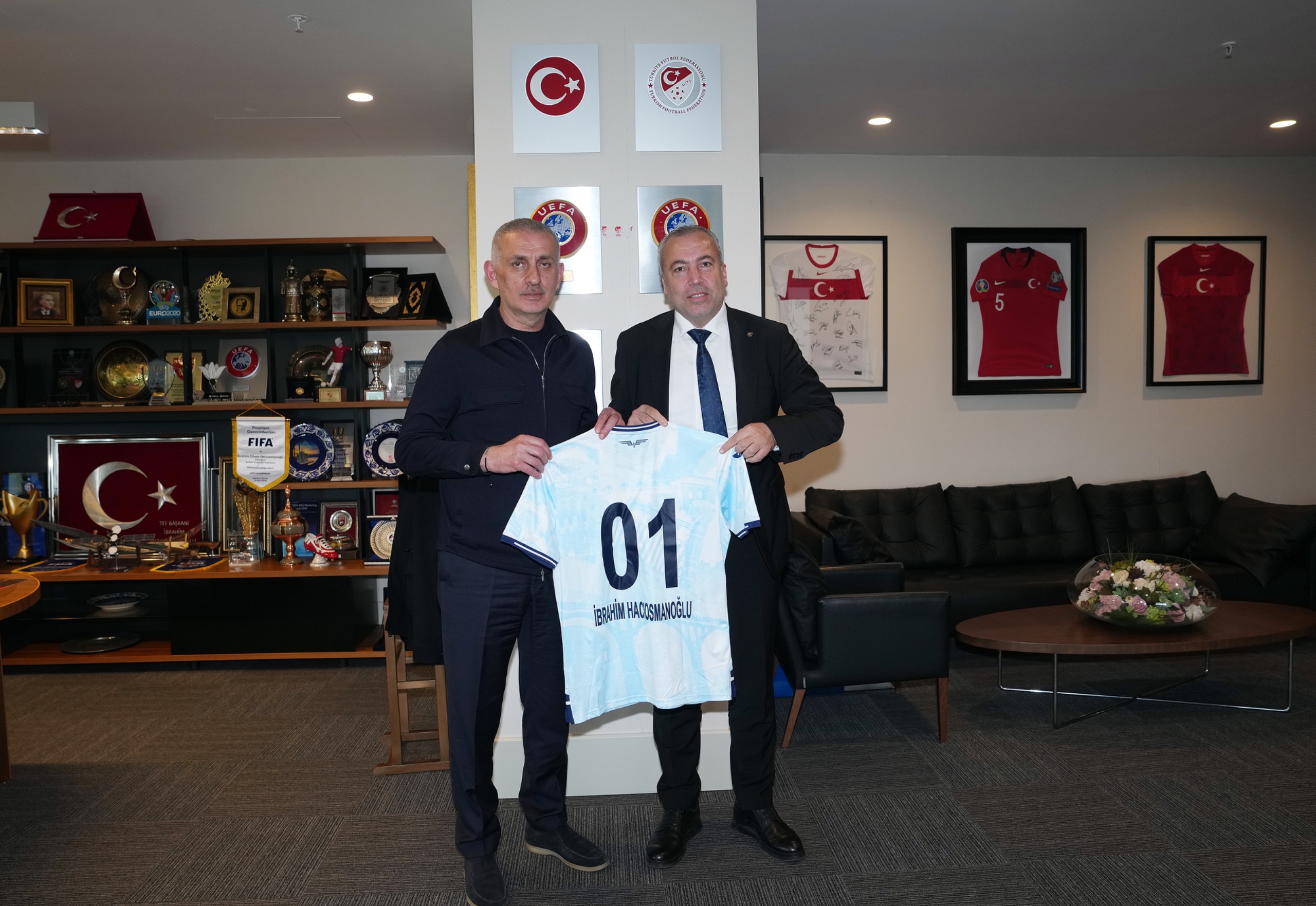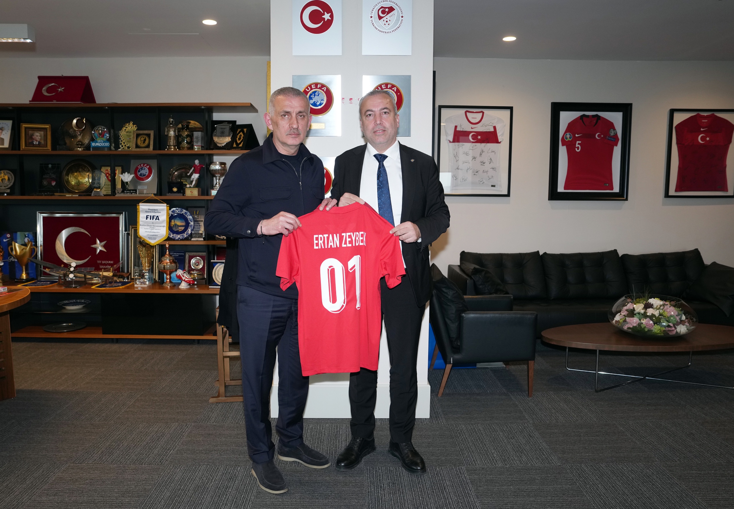 Ziyaretin sonunda TFF Başkanı Hacıosmanoğlu, Ertan Zeybek'e üzerinde isminin yazılı olduğu bir A Millî Takım forması hediye ederken; Ertan Zeybek de TFF Başkanı Hacıosmanoğlu ve Hasan Surözü'ne üzerlerinde isimlerinin yazılı olduğu birer Adana Demirspor A.Ş. forması takdim etti.