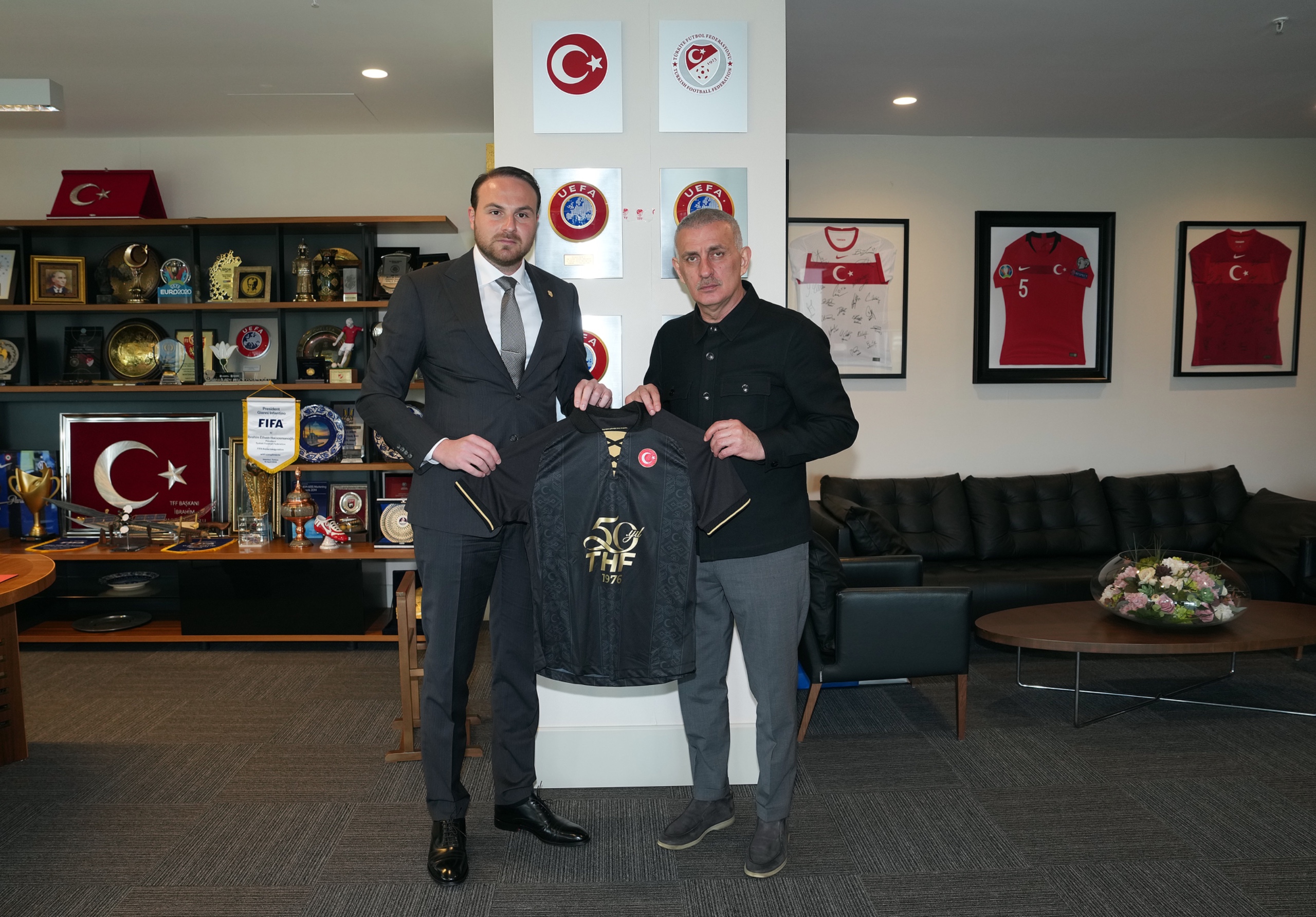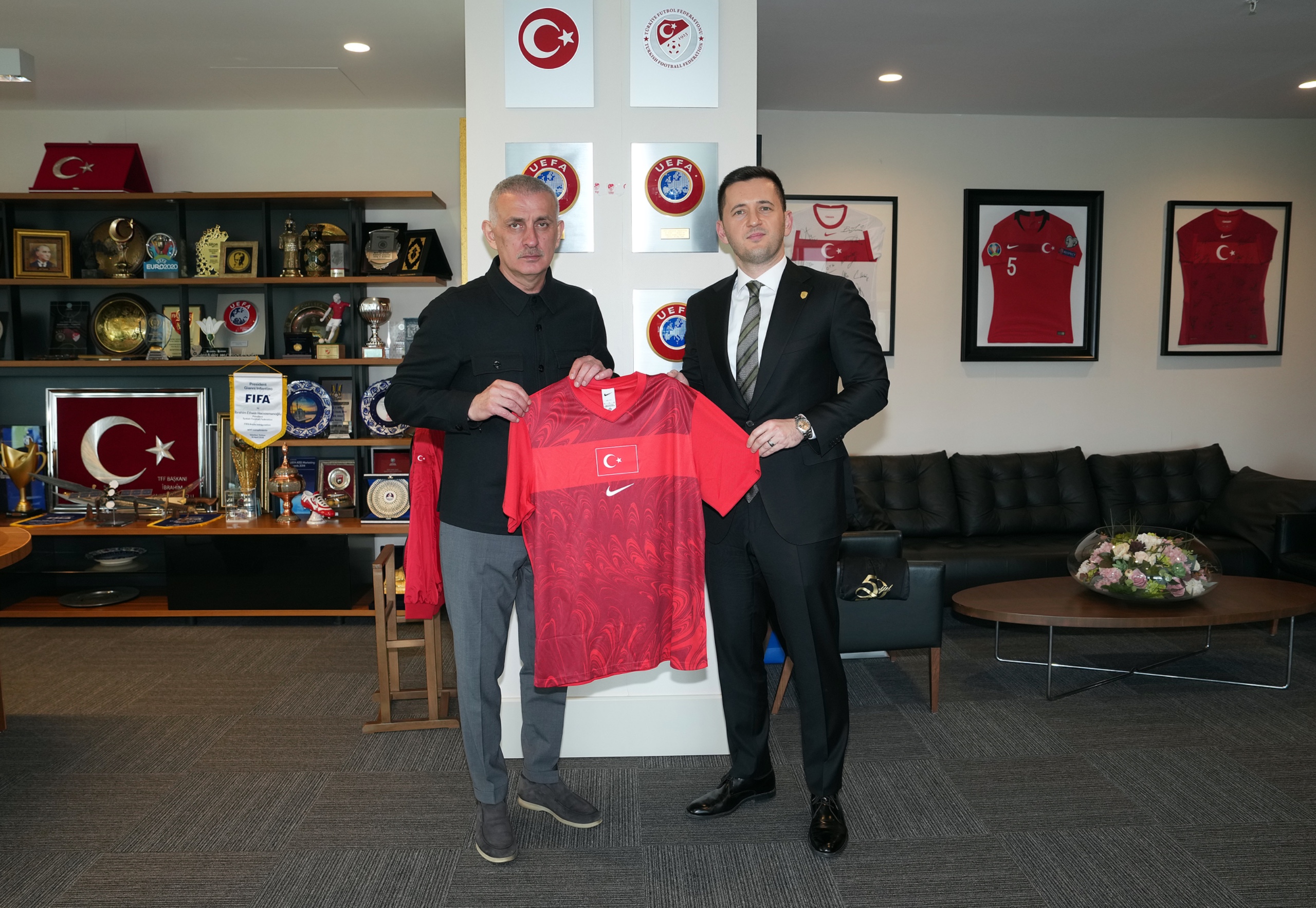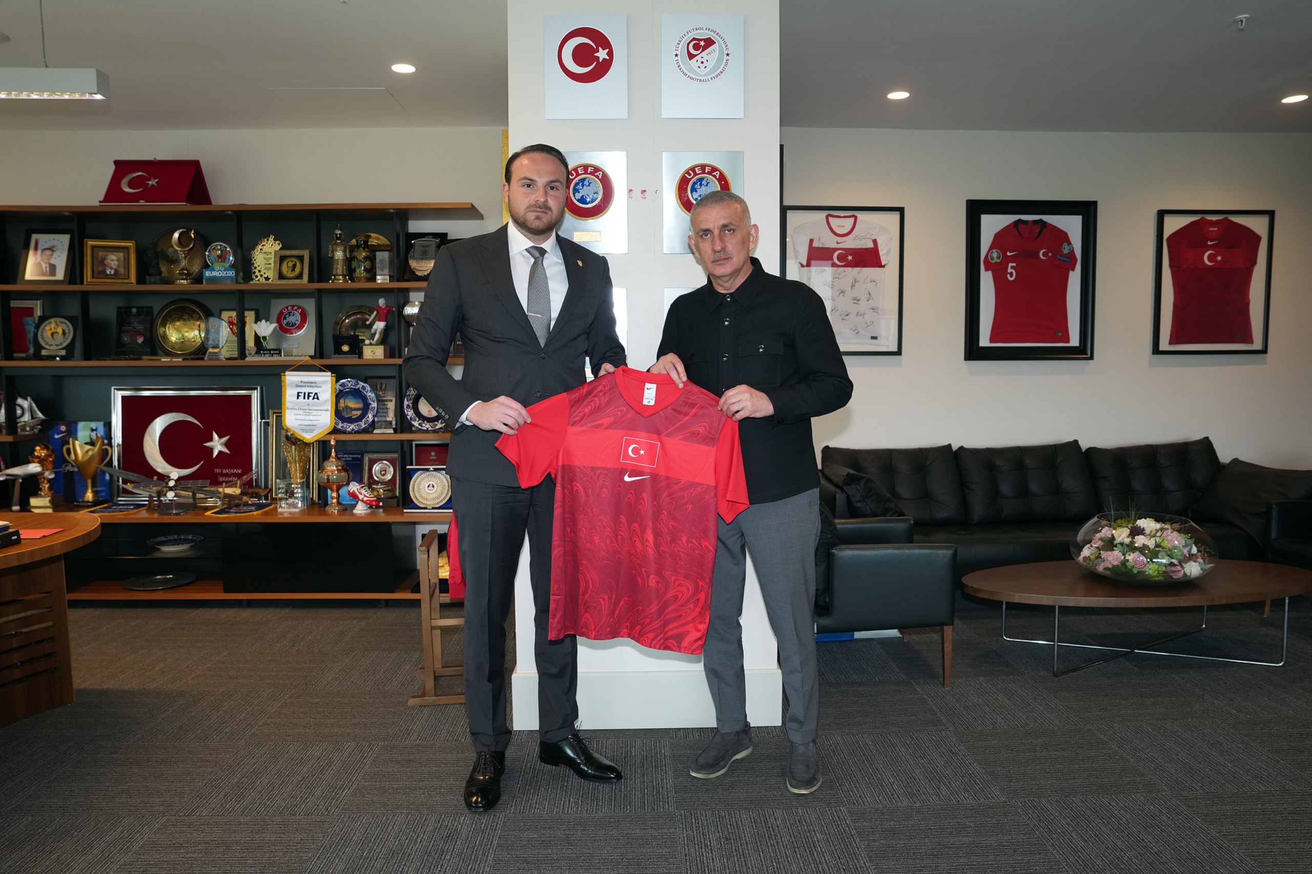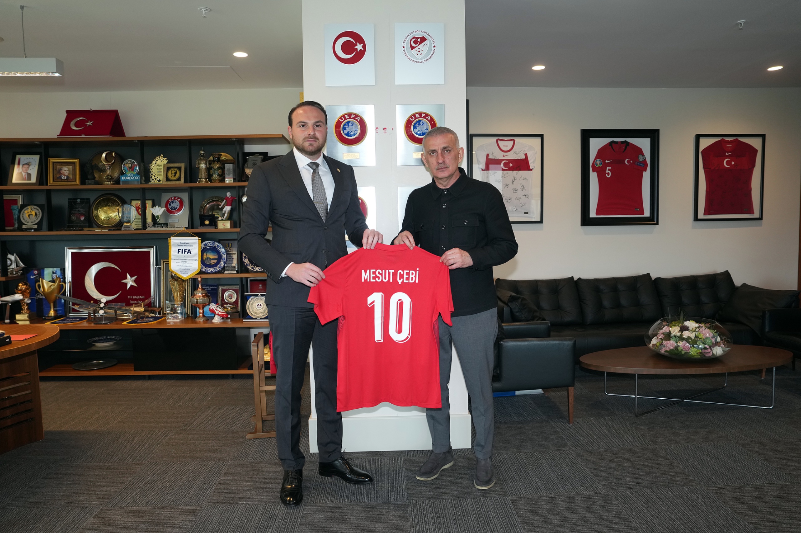 Ziyaretin sonunda TFF Başkanı Hacıosmanoğlu, Mesut Çebi ve İsmet Yiğit Şenocak'a birer A Millî Takım forması hediye ederken; Mesut Çebi de TFF Başkanı Hacıosmanoğlu'na Türkiye Hentbol Federasyonu'nun kuruluşunun 50. yılı için özel olarak hazırlanmış bir anı forması takdim etti.
