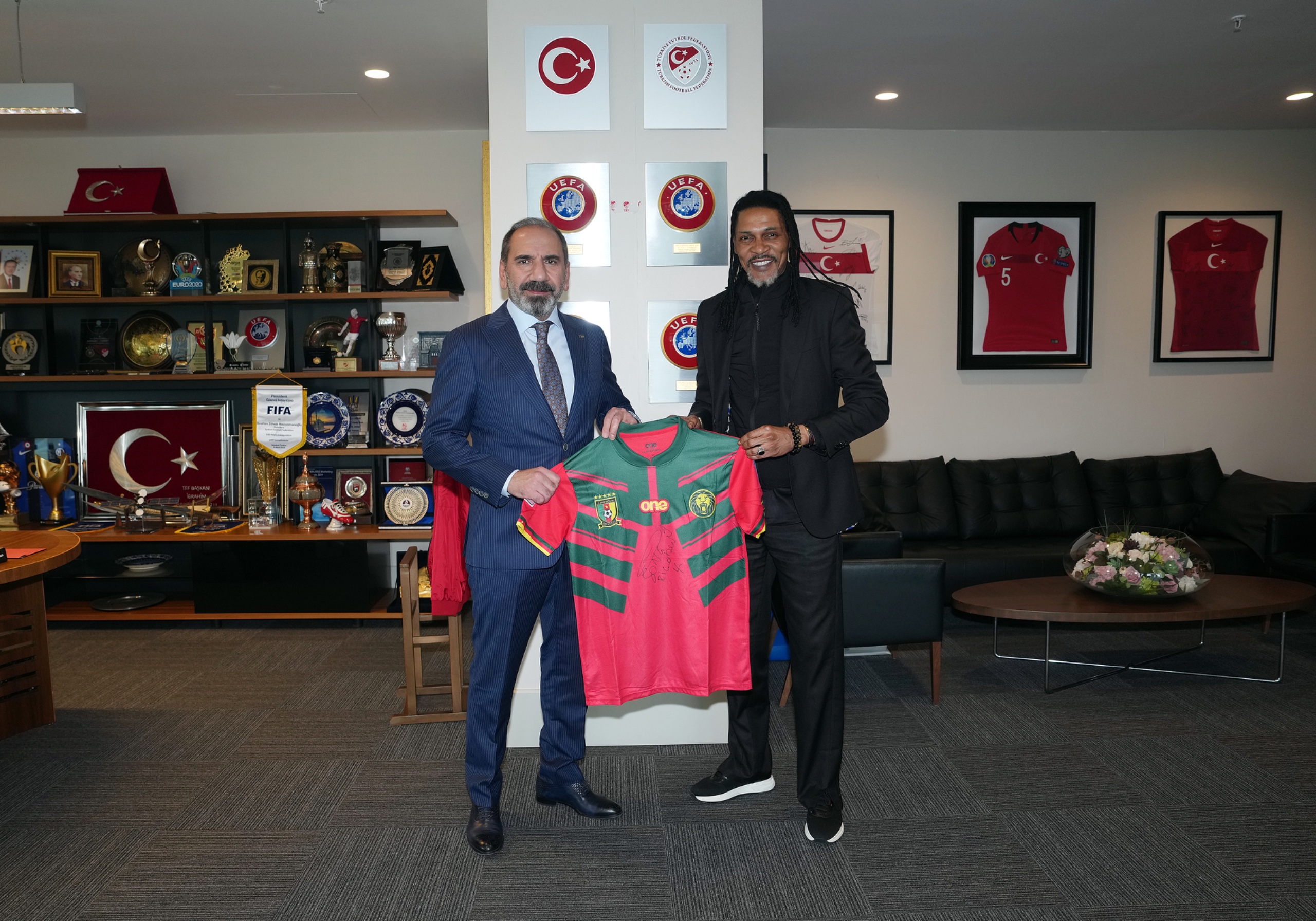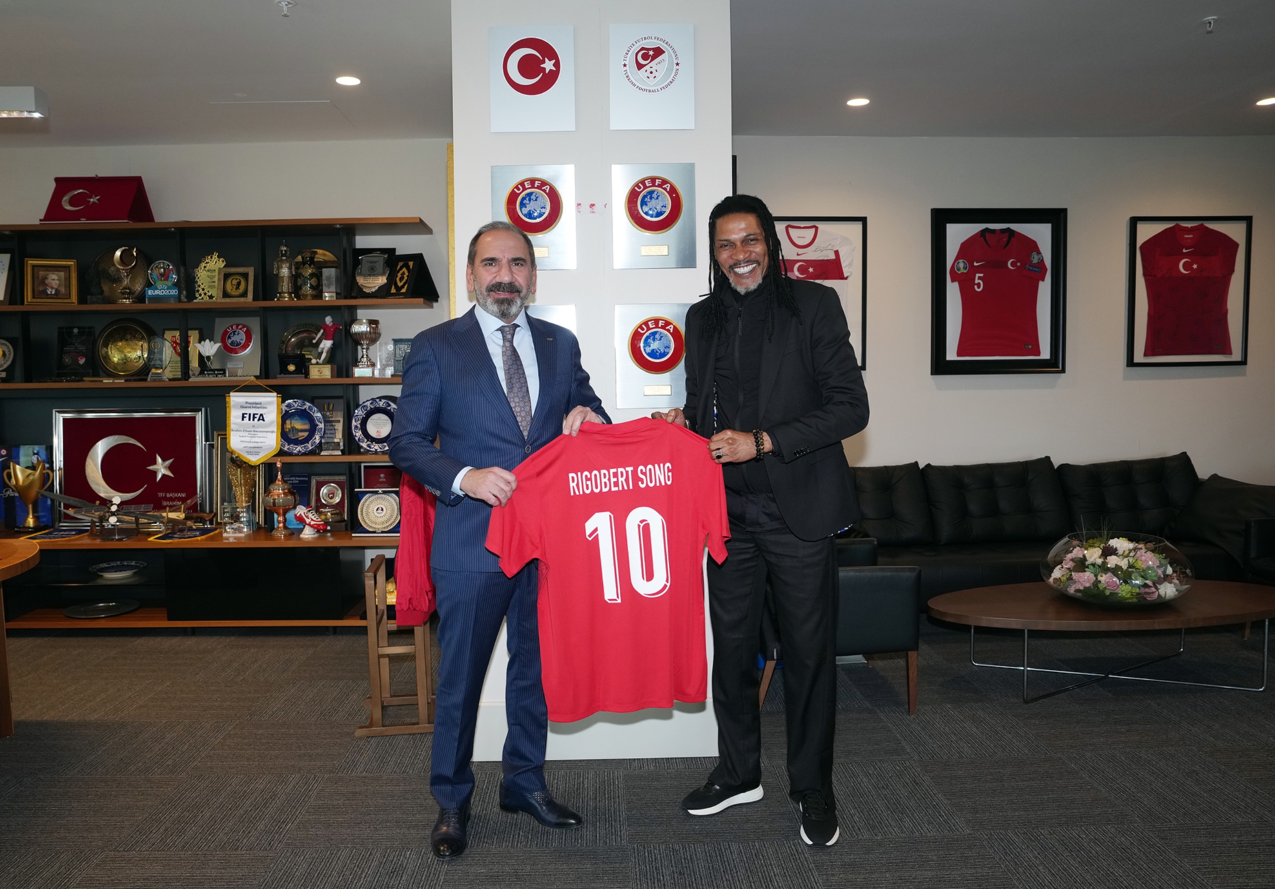 TFF Yönetim Kurulu üyeleri Tahir Ediz Kıray ve Bilal Arslan'ın da yer aldığı ziyarette; TFF Başkan Vekili Mecnun Otyakmaz, Rigobert Song'a üzerinde isminin yazılı olduğu A Millî Takım forması hediye etti.