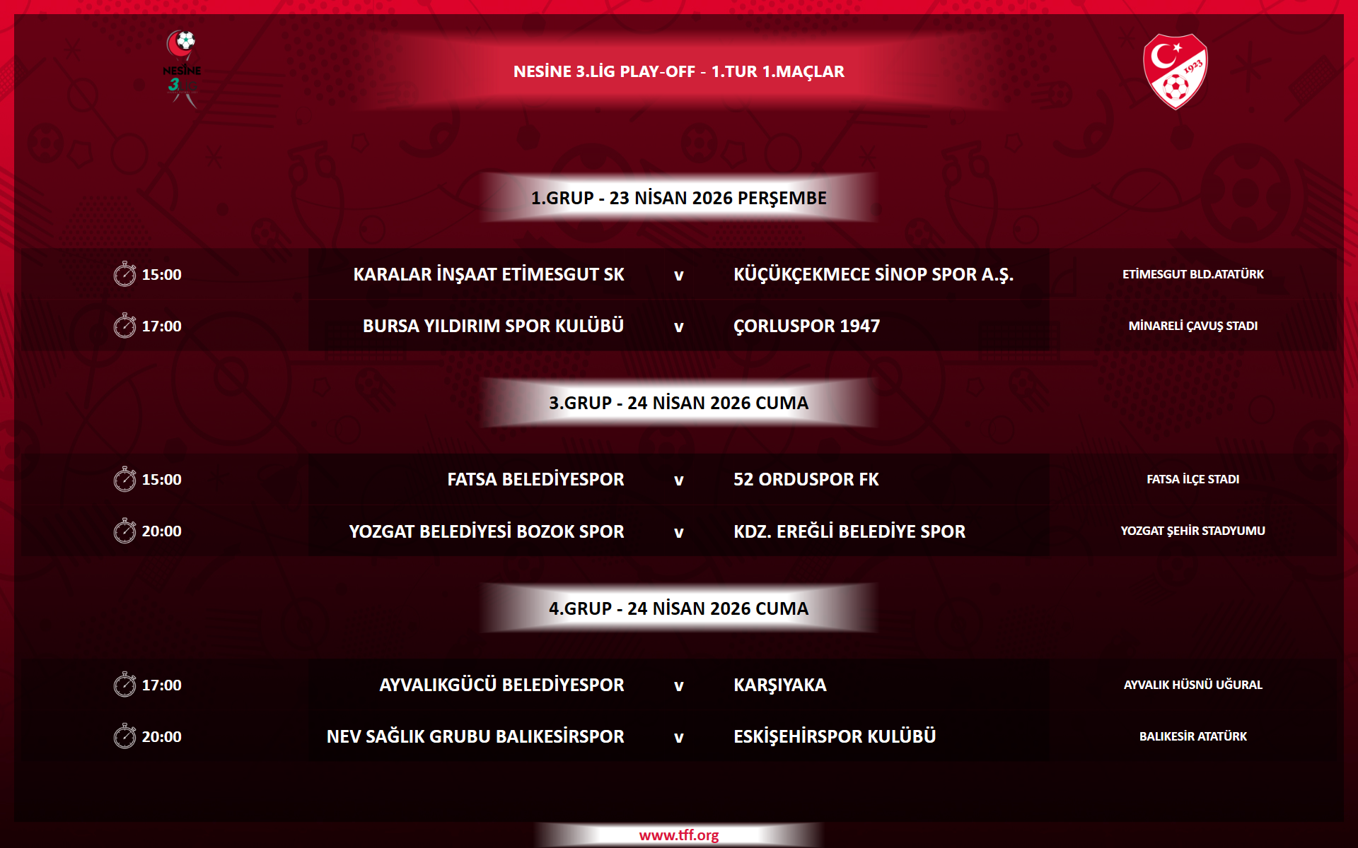 Nesine 3. Lig Play-Off 1. Tur müsabakalarına ilişkin programlar açıklanmıştır.