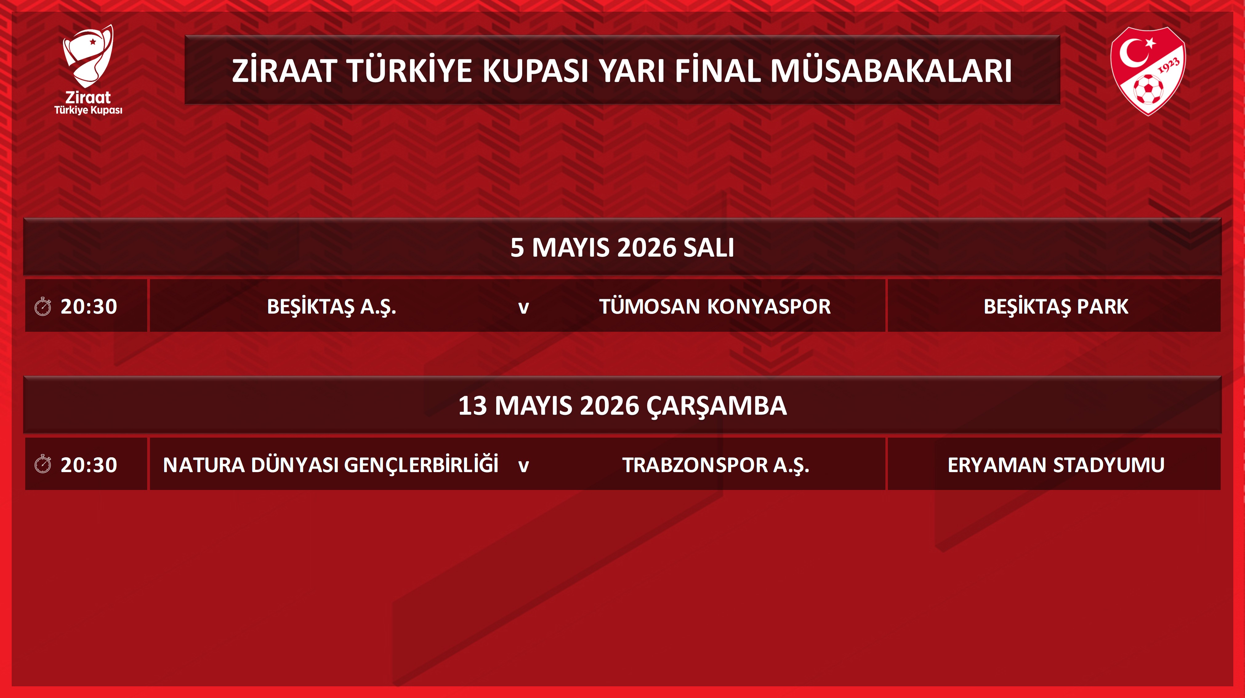 Ziraat Türkiye Kupası yarı final müsabakalarına ilişkin program açıklanmıştır.
